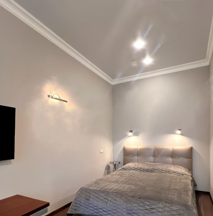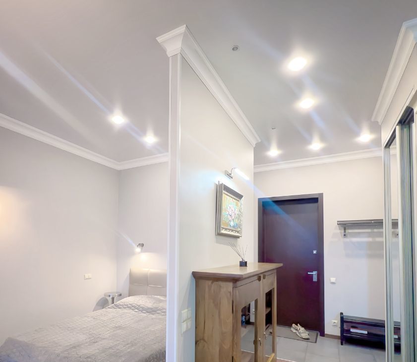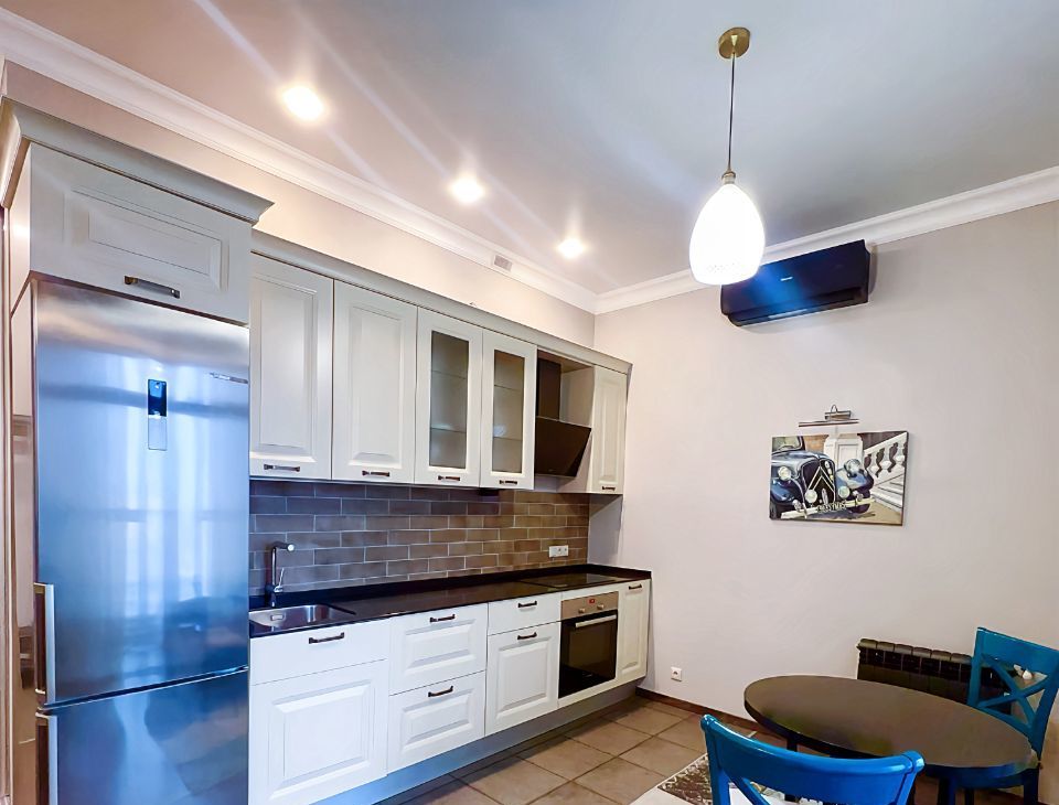 Спальня совмещеная с кухней, которая оснащена бытовой техникой, двуспальная кровать, отдельная гардеробная комната, санузел с душем. Дорогие отделочные материалы, кондиционер, шкаф купе,телевизор, посудомоечная и стиральная машины, большая застекленная лоджия. Современные холлы, консьерж, охраняемая территория, вход по пропускам! Потолки 3 метра! Интернет! Есть возможность аренды машиноместа в подземном паркинге.