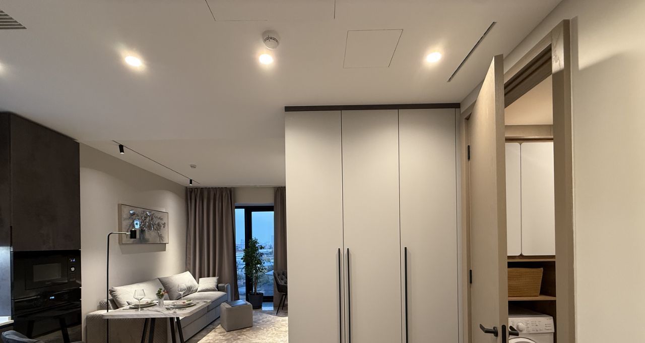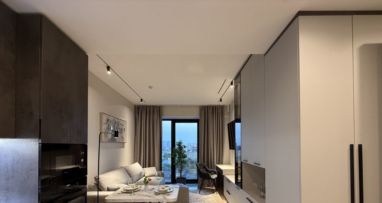 Сдаётся на длительный срок новая квартира в ЖК бизнес-класса Symphony 34 в башне Sienna (корпус D) вместе с кладовкой. Единственный корпус сдан с отделкой квартир, поэтому ремонтные работы не будут беспокоить. Квартира расположена на благоустроенной закрытой территории с прекрасным садом скрытым от посторонних и в тоже время недалеко от делового центра, где все городская инфраструктура находятся в пяти минутах от ЖК. Рядом Тимирязевский лесопарк, Хлебозавод, Флакон, кафе, магазины, салоны красоты. Квартира 27,4 кв.м. на 11 этаже, радом на этаже также кладовка 2,1 кв.м., потолки 3 м. Из панорамного окна открываются красивый вид в сторону центра, в отдалении на Москва-сити. Квартира выполнена в современном стиле, установлена приточная система вентиляции и кондиционирования, система Умный дом, оборудована для проживания: посуда, бытовая техника, постельные принадлежности, бытовые аксессуары. Условия аренды: с залогом в размере месячной оплаты, без агентской комиссии, без животных, с оплатой ЖКУ только по счетчикам - вода, электроэнергия, водоотведение. Напрямую с собственником. Aгeнтствам пpoсьбa нe беcпoкоить!