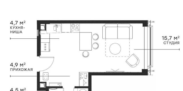 Студия Москва 2-я Хуторская ул., 34 (30.3 м²)
