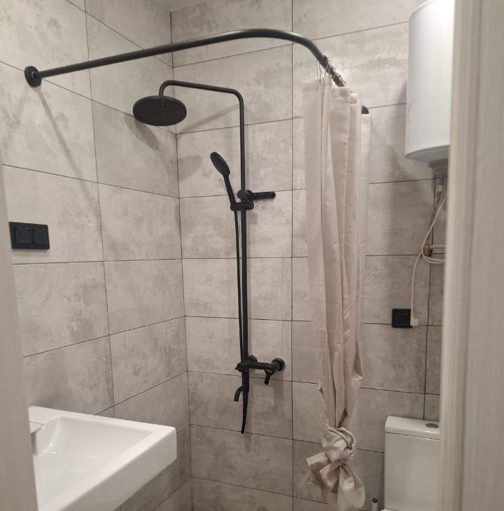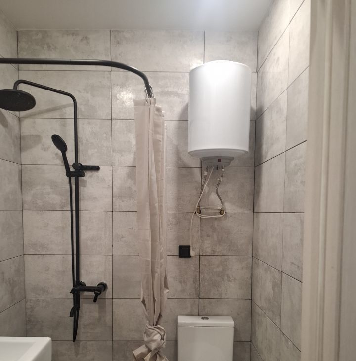 В квартире сделан качественный евроремонт. Комфортная обстановка: мебель на кухне и в комнате, а также вся необходимая техника — холодильник, телевизор и стиральная машина. Санузел совмещенный, оснащен душевой кабиной. Окна выходят во двор, поэтому в квартире тихо и спокойно.