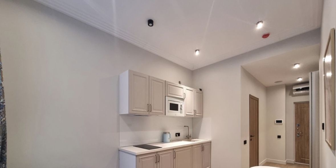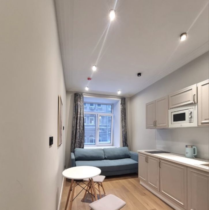 Продаются шикарные апартаменты-студия в самом центре города, всего в одной минуте пешком от станции метро "Маяковская". Общая площадь составляет 18,5 кв. м, жилая 14 кв. м, а кухня 4 кв. м. Апартаменты расположены на 2-м этаже 6-этажного дома с пассажирским лифтом.