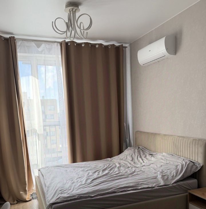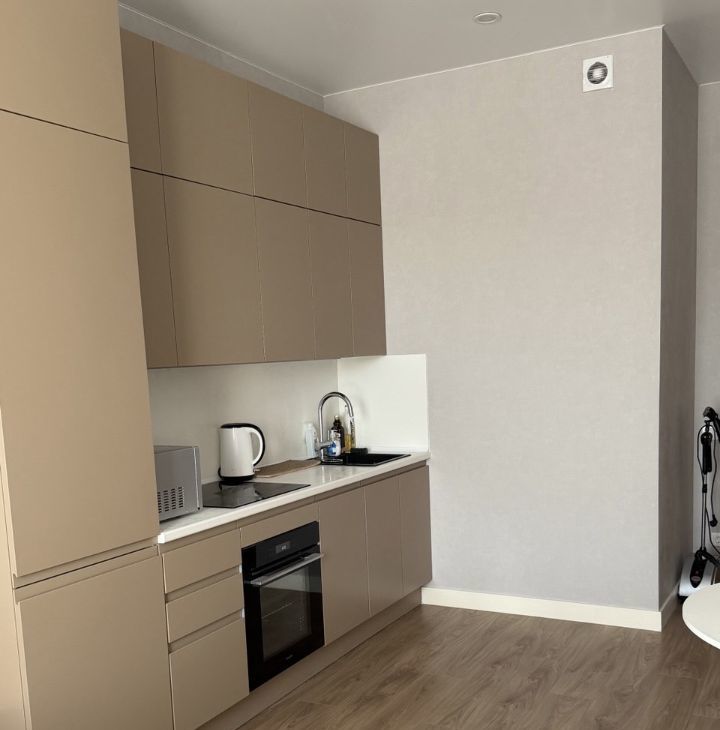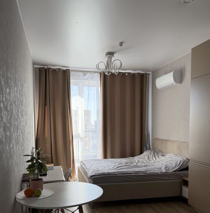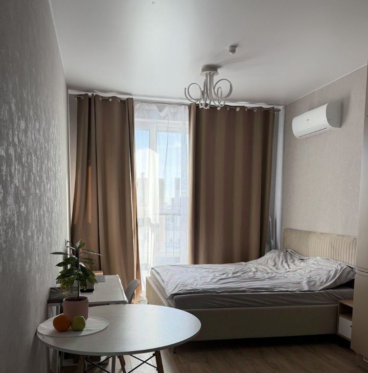 Сдаётся квартира- студия с евроремонтом в ЖК Вереск. Квартира оборудована кухонным гарнитуром, мебелью и бытовой техникой. Установлен кондиционер, есть холодильник, стиральная и посудомоечная машина, варочная панель, духовой шкаф, микроволновая печь.Полы ламинат и плитка. Окна выходят во двор,установлен шлагбаум.