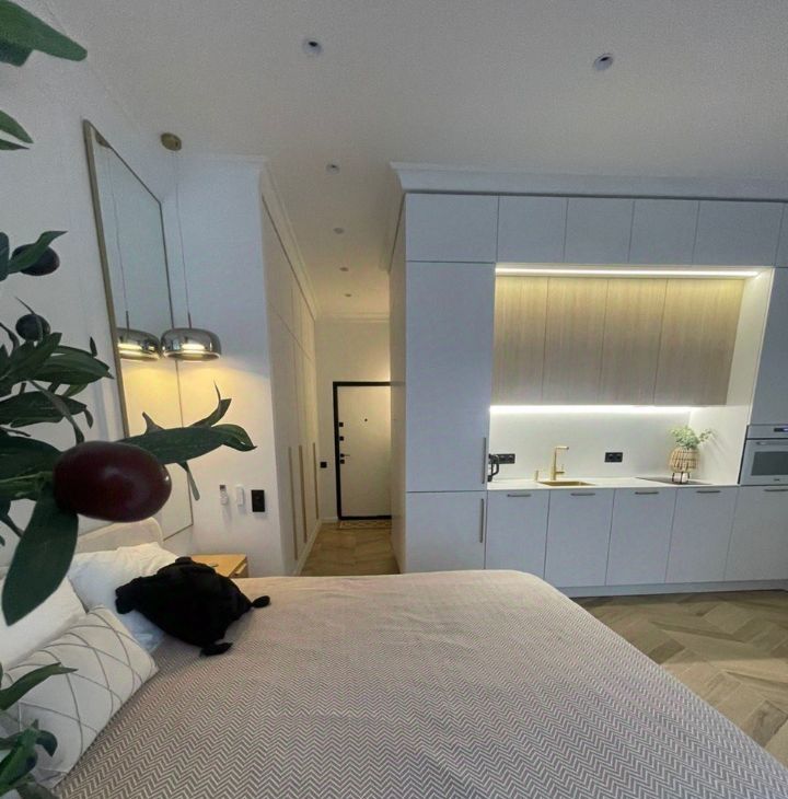 Предлагается в аренду квартирa-cтудия площадью 30 м2 на длительный срок в современном ЖК бизнес класса доме. Просторная кухня гостиная оснащена всей необходимой техникой (посудомоечная машина, система фильтрации воды, духовой шкаф с функцией микроволновой печи, холодильник, плита). В квартире выполнен дизайнерский ремонт, создающий уютную атмосферу. Жилая зона включает в себя стильную мебель и удобную кровать, а также вместительный шкаф для хранения вещей. Из окон открывается вид на ухоженный двор с зелёными насаждениями и зонами отдыха. Ванная комната совмещённая, оборудована качественной сантехникой и ванной. Все напольные покрытия в квартире оснащены теплыми полами. В квартире установлен кондиционер для комфортного проживания в любое время. Шторы блэкаут с системой электронного привода. Предусмотрено несколько сценариев освещения.
