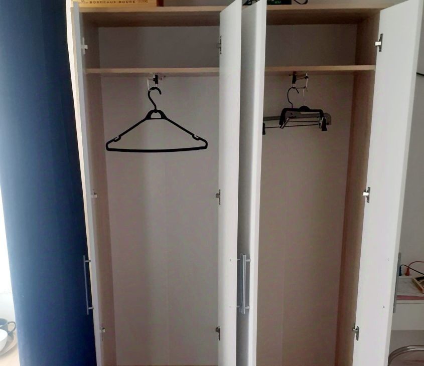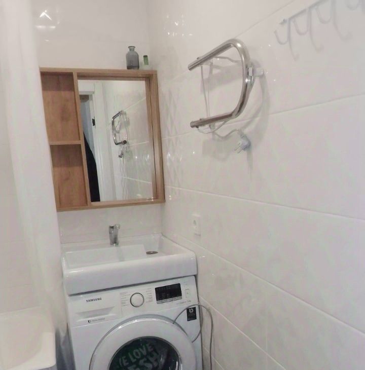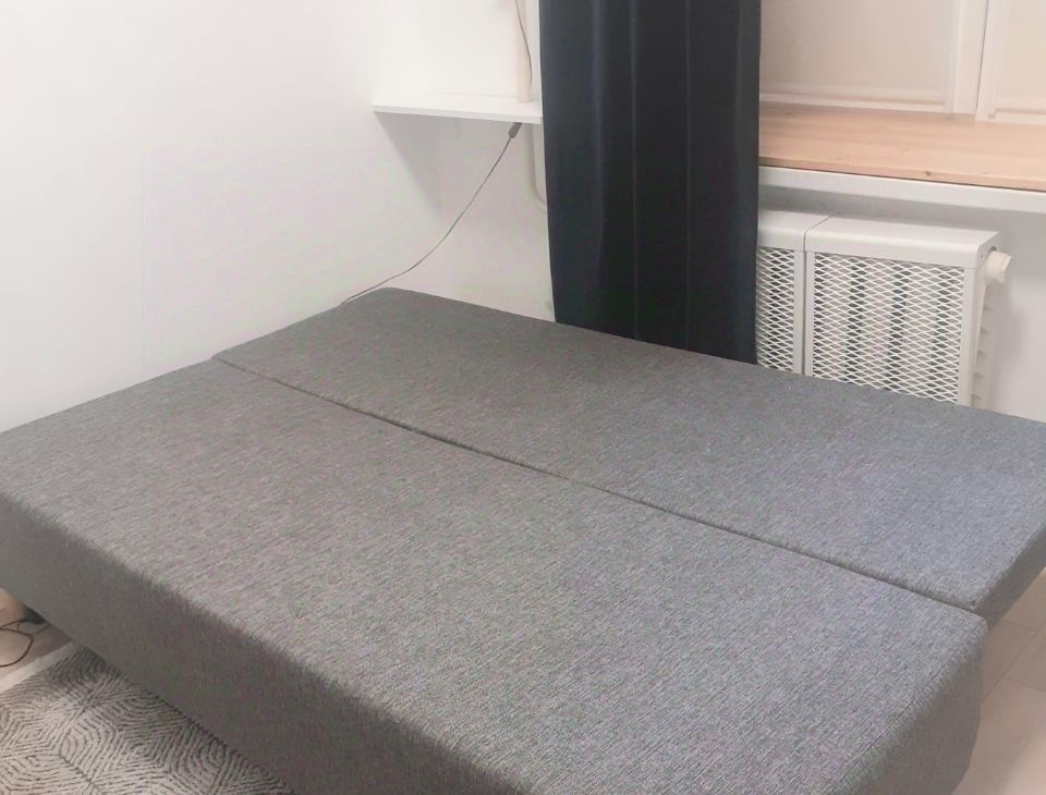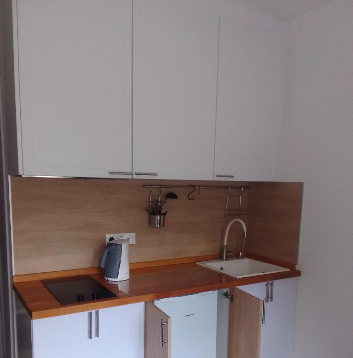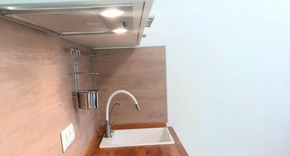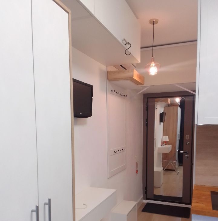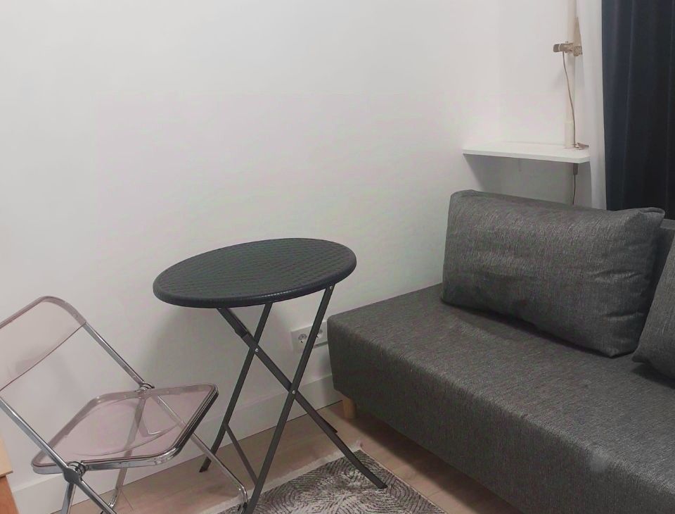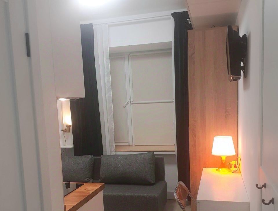 Студия оборудована всем необходимым для комфортного проживания одного человека - тв, ванна, стиральная машина, проточный фильтр воды, утюг, чайник, посуда.