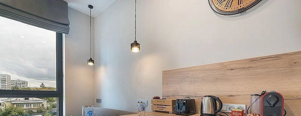 Что есть в студии: — кондиционер; — кухня из массива ясеня; — холодильник Liеbhеrr; — посудомоечная машина DеLоnghi; — духовой шкаф; — варочная панель; — капсульная кофемашина; — тостер; — чайник; — посуда и столовые приборы; — ванная с сантехникой Grое; — гладильные и спальные принадлежности; — пылесос; — римские шторы из премиальной ткани.