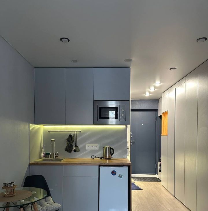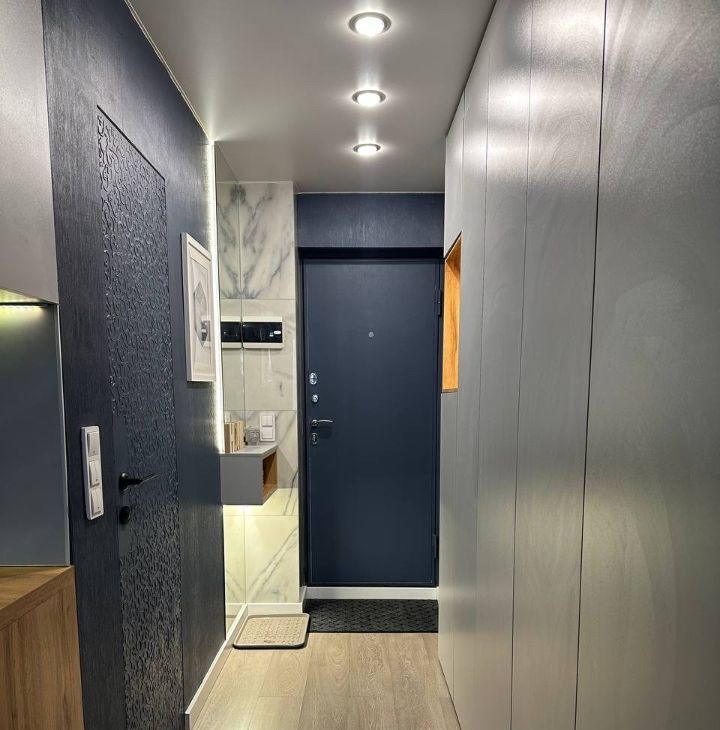 • шкаф во всю стену в коридоре и маленькие шкафчики в комнате.