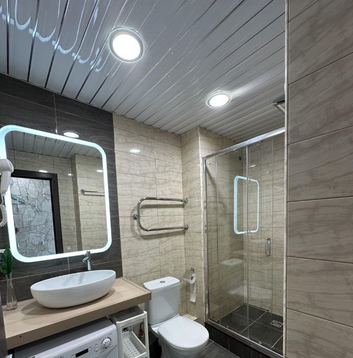 Двуспальная кровать с ортопедическим матрасом. Кондиционер, фильтр очистки питьевой воды. Wi-fi. Спальные принадлежности , белье и полотенца. Полный набор кухонной посуды и столовые приборы. Инвентарь и техника для стирки и уборки.