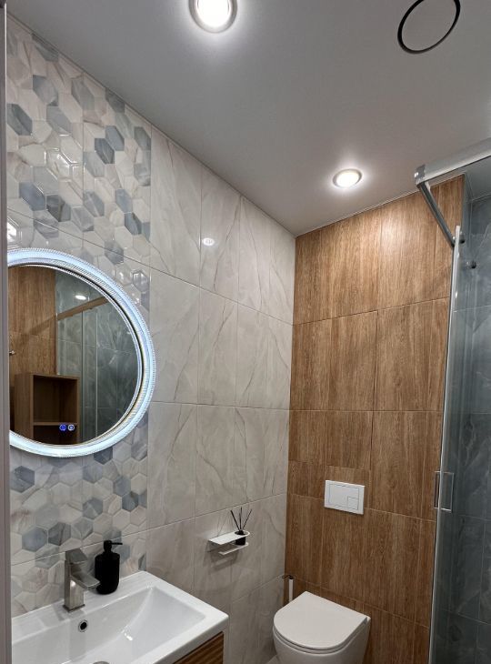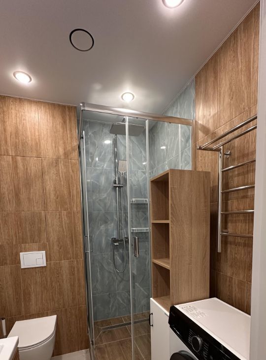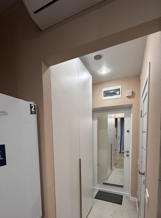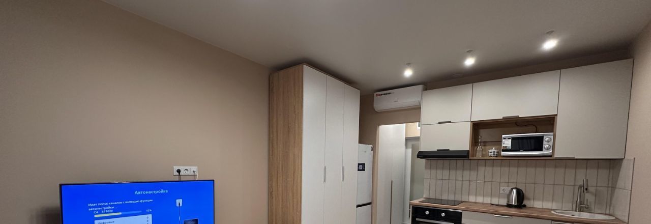 В квартире сделан свежий дизайнерский ремонт. Для квартирантов собственник предлагает полностью меблированную квартиру, обеспеченную спальным местом, обеденной зоной, местами для хранения вещей, санузлом с душевой кабиной, стиральной машиной и электрическим полотенцесушителем. Уже подключенный интернет с wi-fi роутером, телевизор с диагональю 43 дюйма, кухонная зона, обеспеченная всей необходимой бытовой техникой: варочная индукционная панель, духовой шкаф, вытяжка, микроволновая печь и электрический чайник. В квартире имеется кондиционер, для комфортной жизни в летний период.