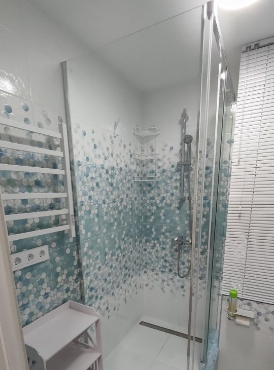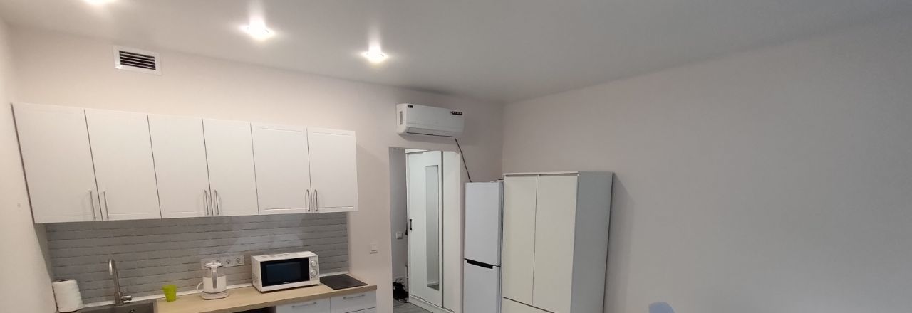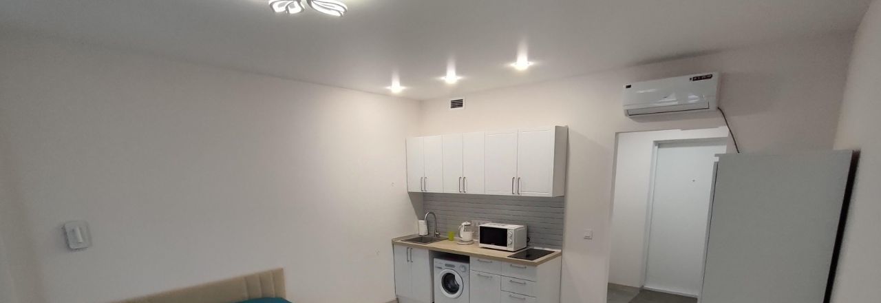 Квартира с НОВЫМ ремонтом, полностью готова для комфортного проживания. В комнате и на кухне есть вся необходимая мебель. Для вашего удобства установлена современная техника: кондиционер, холодильник и стиральная машина. В ванной комнате — душевая кабина.