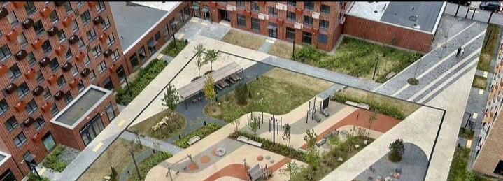 Двор с закрытой территорией.