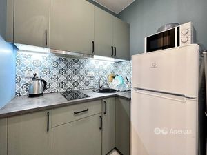 В студии сделан евроремонт. Продуманная планировка позволяет комфортно разместить мебель и технику. В квартире есть всё необходимое для жизни: холодильник, телевизор и стиральная машина. Мебель установлена как в комнате, так и на кухне. Санузел совмещённый, оборудован душевой кабинкой. Окна выходят во двор, поэтому в квартире всегда тихо и спокойно.