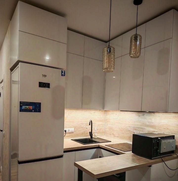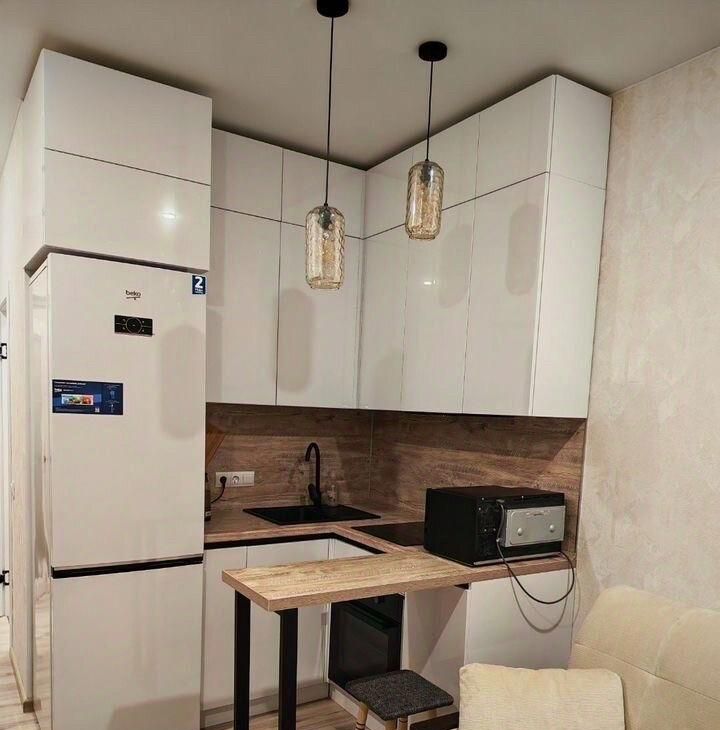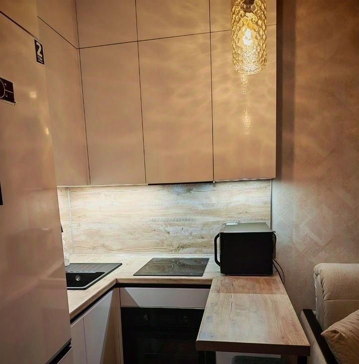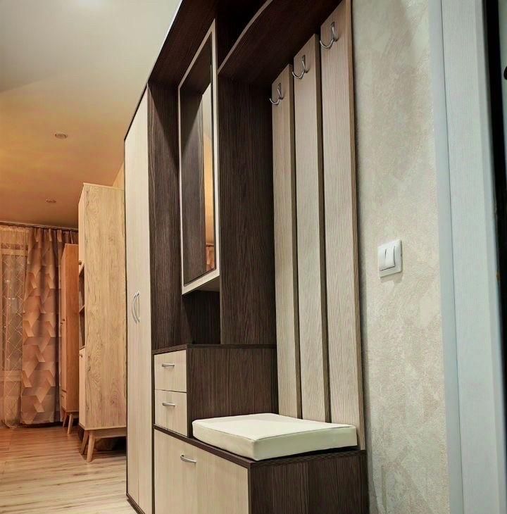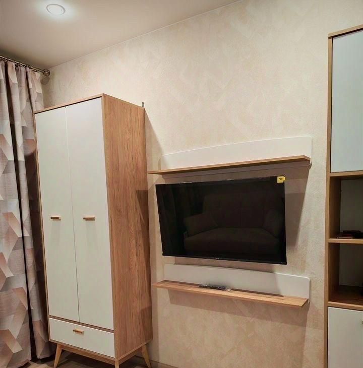 Очень уютная, видовая студия. Кухня оборудована всей необходимой техникой, раскладной диван, телевизор, совмещенный санузел с душевой, достаточно мест для хранения вещей.
