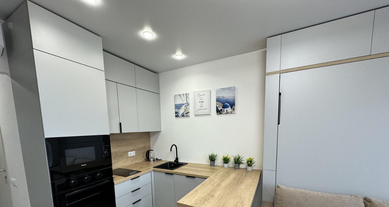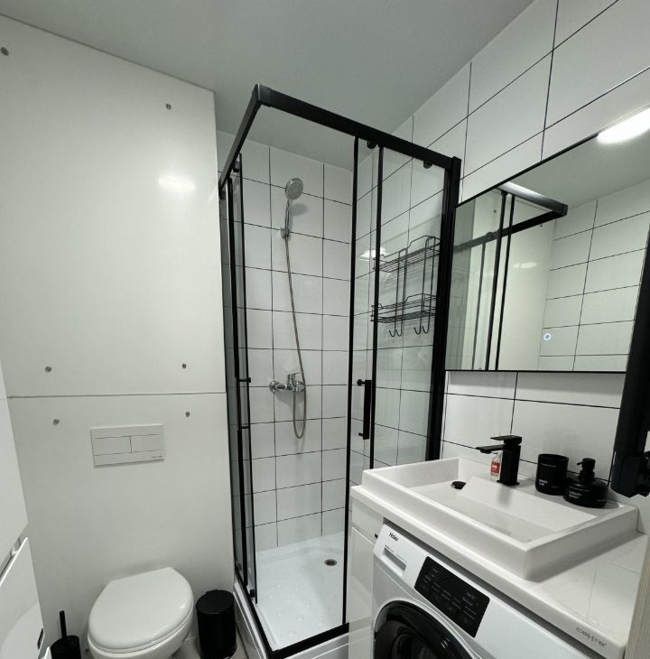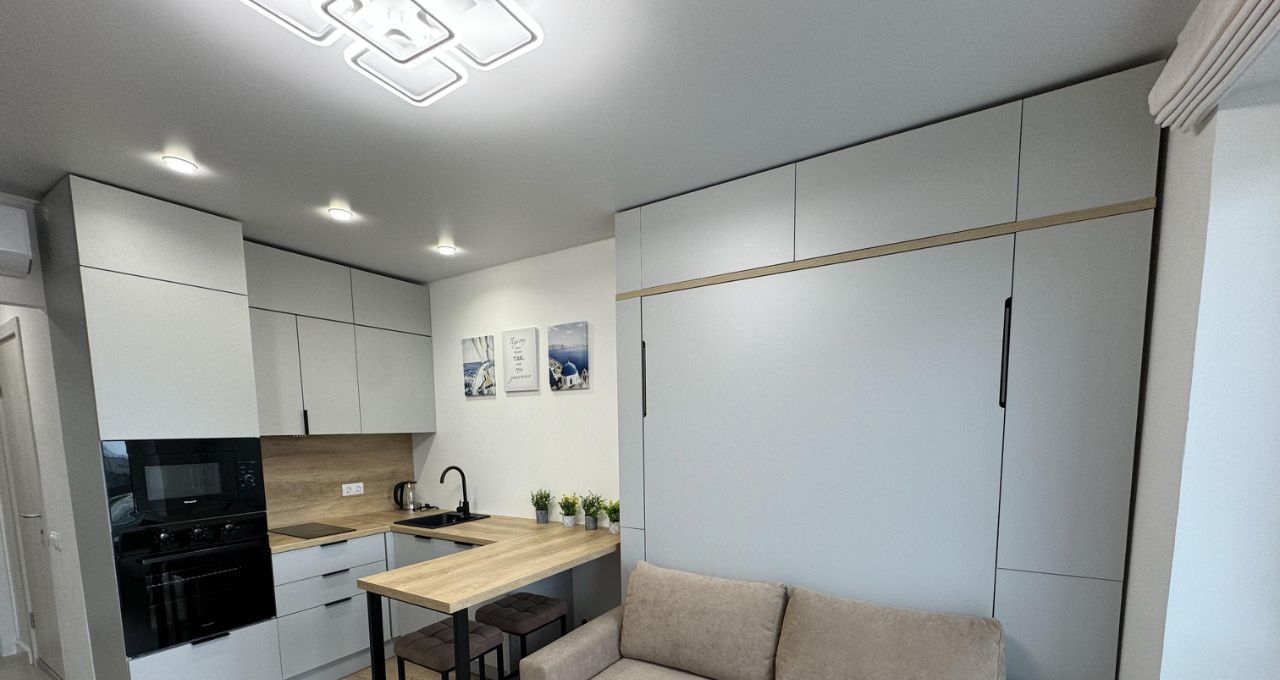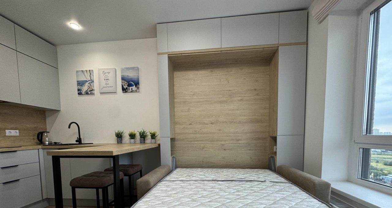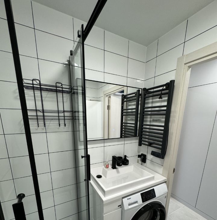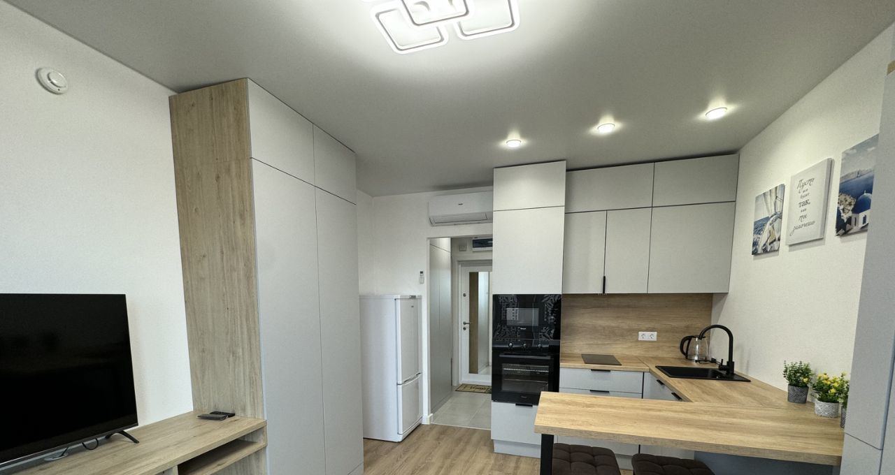 Квартира полностью меблирована. В наличии вся необходимая техника: кондиционер, холодильник, телевизор, посудомоечная машина и стиральная машина, чайник. На кровати ортопедический матрас, спальное место 140х200. В ванной комнате установлена душевая кабина.