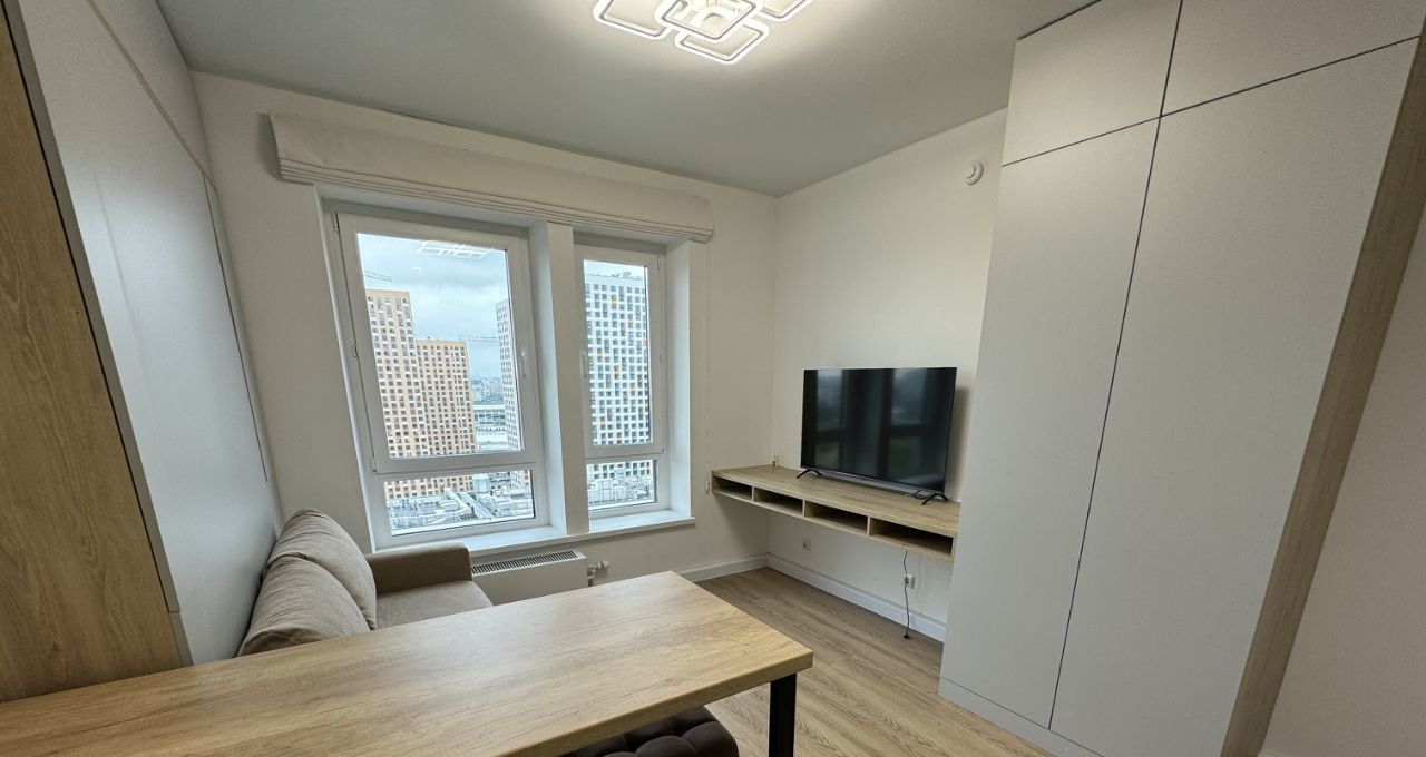 Сдаётся уютная квартира в новом доме по адресу: Россия, Москва, Амурская улица, 2Ак3. Общая площадь квартиры — 20 кв. м, жилая — 15 кв. м. Квартира расположена на 23-м этаже 33-этажного дома, окна выходят во двор.