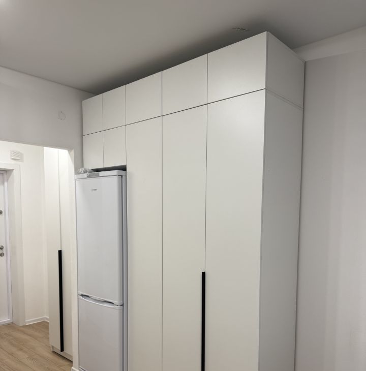 Встроенные шкафы обеспечивают достаточное пространство для хранения вещей. Кровать 160х200 с подъемным механизмом.