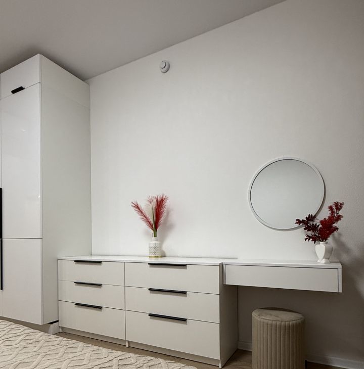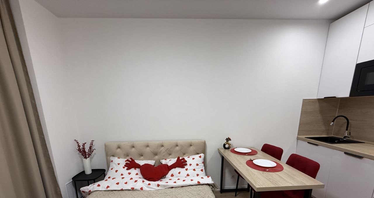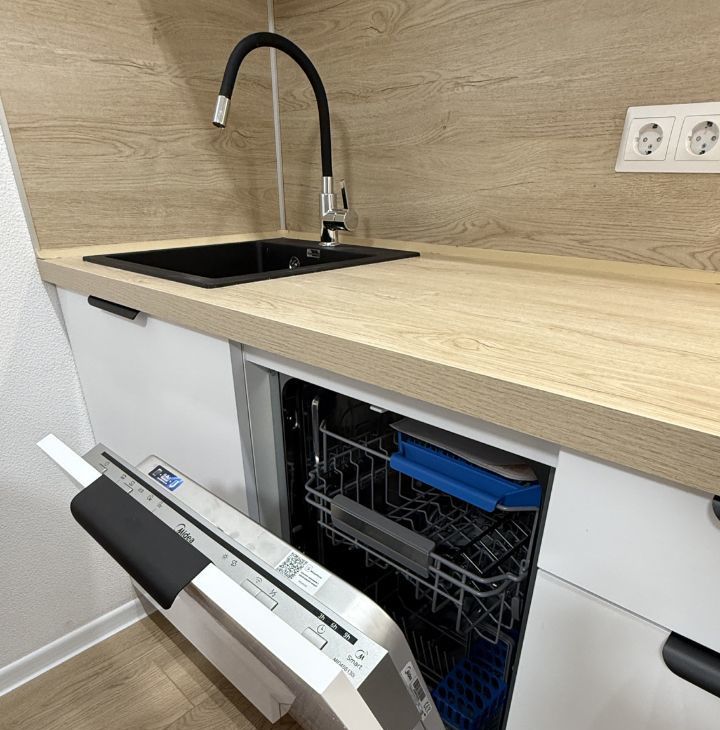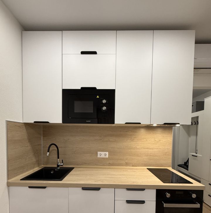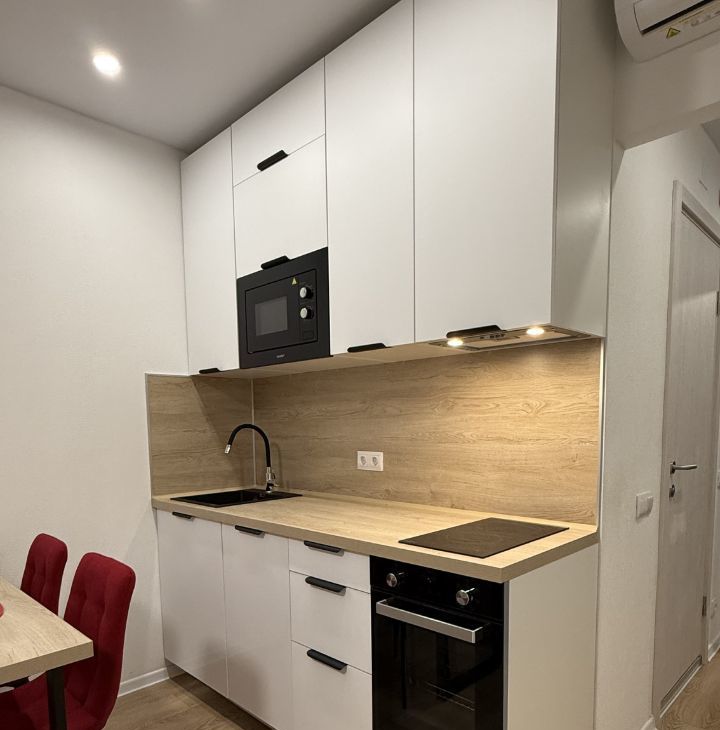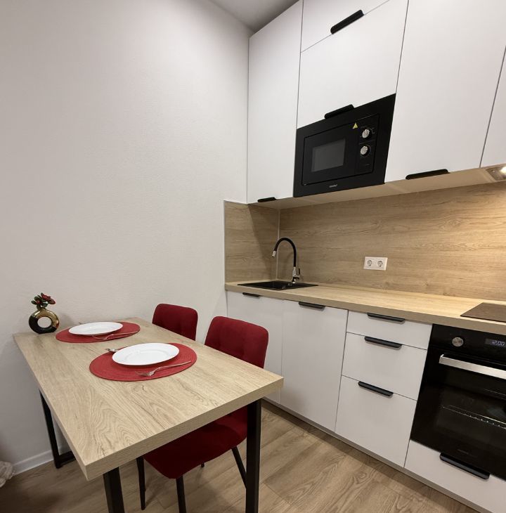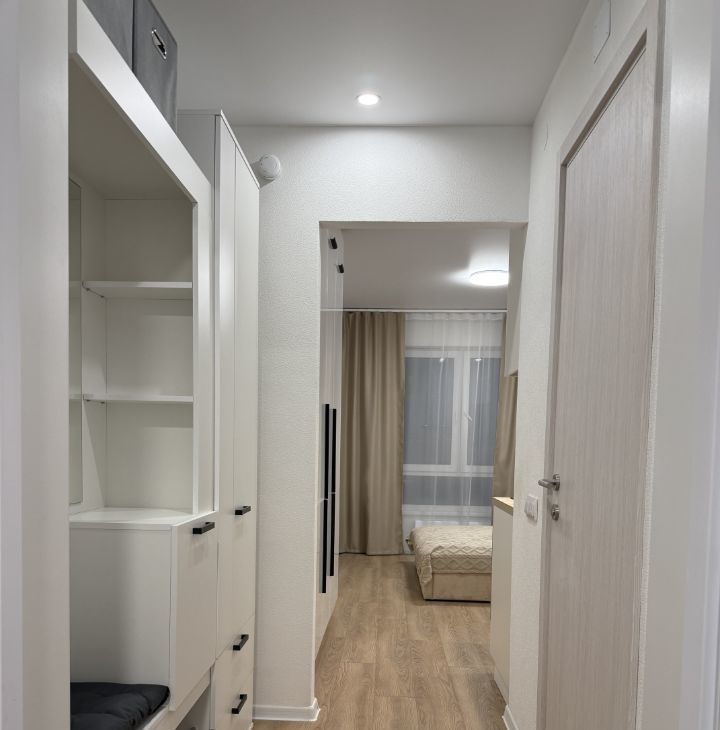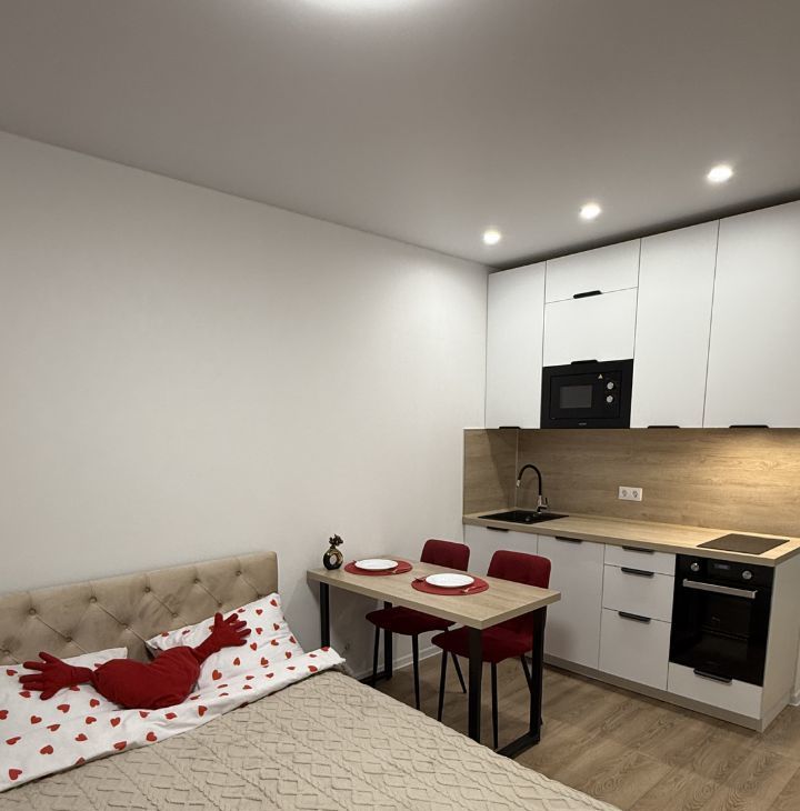 Вашему вниманию предлагается в аренду стильная студия с дизайнерским ремонтом в монолитном доме 2025 года постройки. Просторная кухня оборудована современной встраиваемой техникой: холодильник, варочная панель, СВЧ, духовой шкаф и посудомоечная машина. В комнате удобная кровать, комод и вместительные шкафы для хранения вещей. Доукомплектуем телевизором по желанию арендаторов. Совмещенный санузел оснащен душевой кабиной с тропическим душем и стиральной машиной. Вся техника, мебель и вещи новое!! Есть комплект подушек и одеяла, покрывало, утюг. Никто не жил, сдается впервые. Квартира находится на 8 этаже, в доме есть два пассажирских и два грузовых лифта. Для вашего удобства предусмотрена подземная парковка (в аренду за доп.плату). Во дворе обустроена детская площадка. Концепция - двор без машин, новая современная детская площадка.