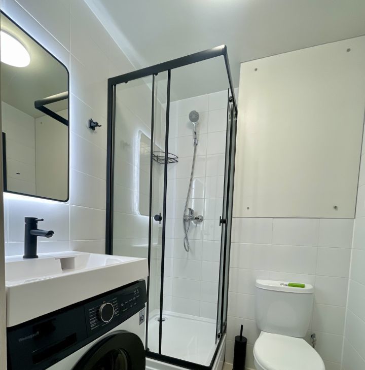 В квартире сделан евроремонт, поэтому здесь приятно находиться. Обстановка полностью укомплектована мебелью: на кухне и в комнате есть все необходимое. Из техники: холодильник, кондиционер, телевизор, посудомоечная и стиральная машины. В ванной комнате установлена душевая кабина, что особенно удобно для быстрого утреннего душа.
