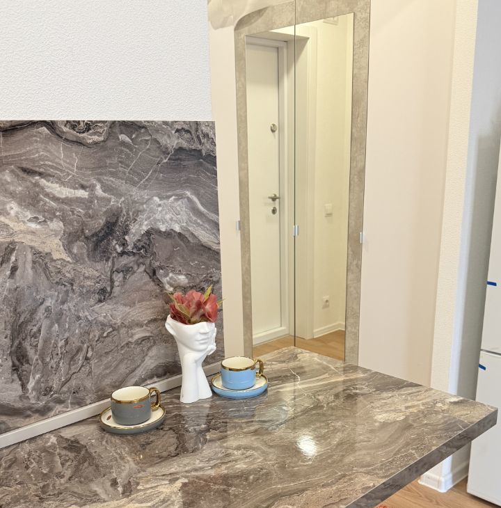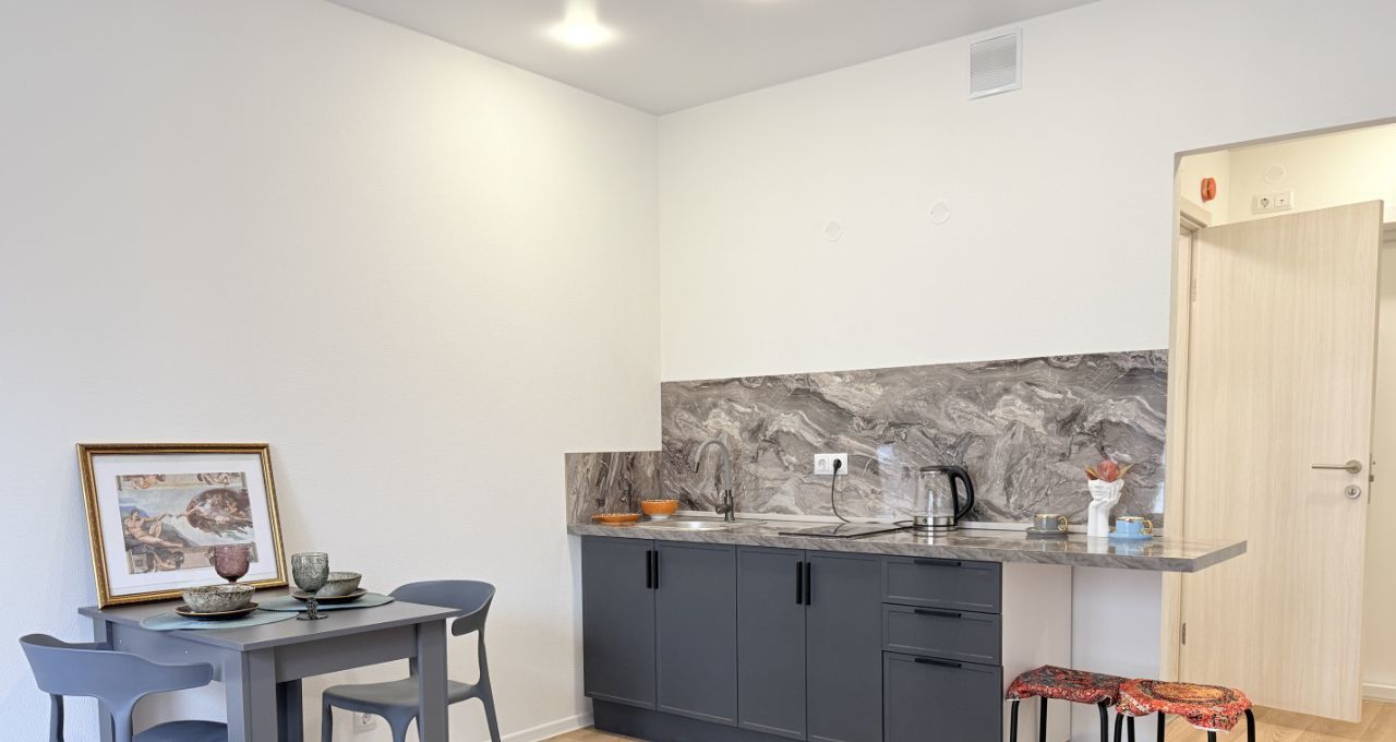 Квартира полностью укомплектована: свежий ремонт, вся необходимая мебель и техника (стиральная машина, холодильник, кондиционер, микроволновка), дизайнерская посуда для изысканных ужинов. Здесь есть всё, чтобы чувствовать себя как дома — от пушистых полотенец до стильных деталей интерьера.