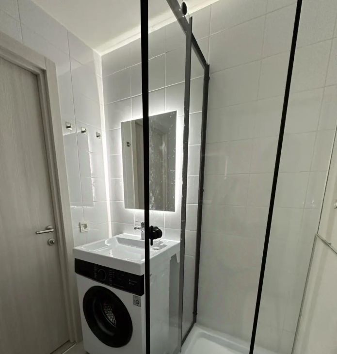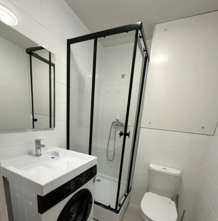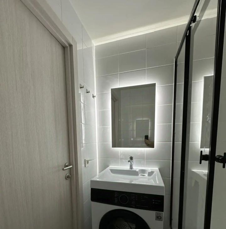 Установлена мощная сплит-система, современная сантехника и стиральная машина.