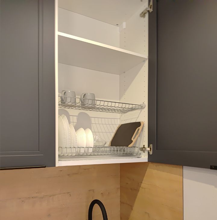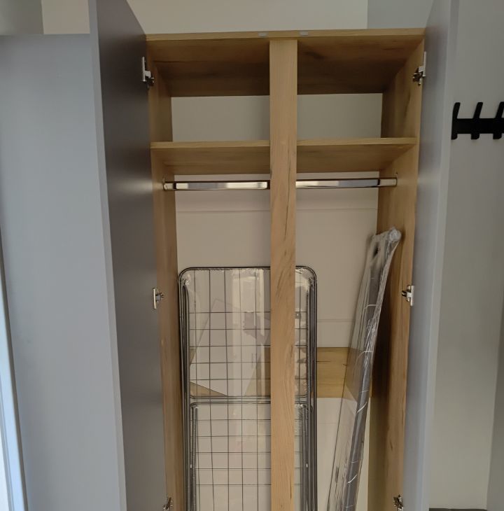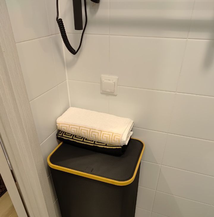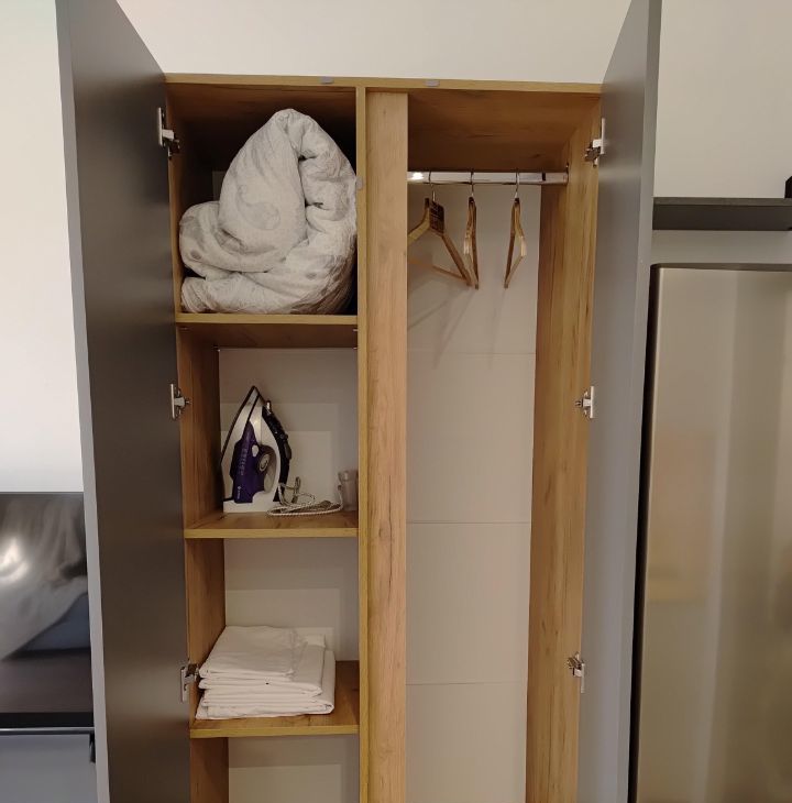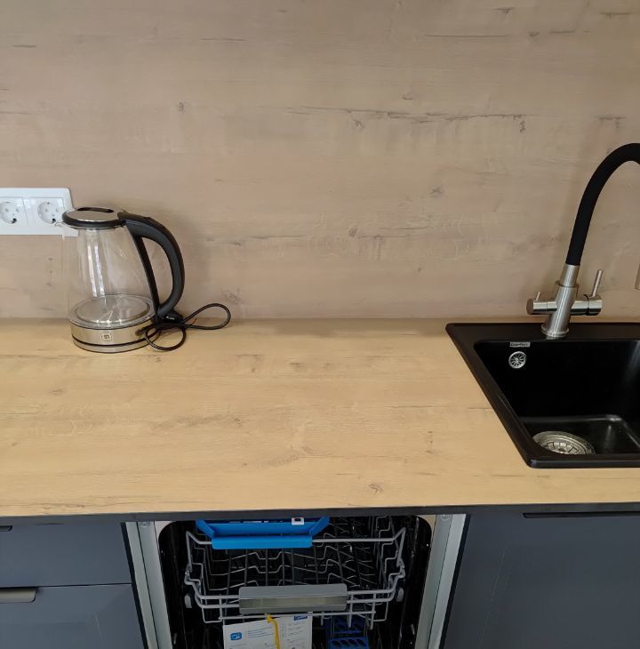 Бытoвая тeхника: стиральная машина, посудомоечная машина, холодильник, микроволновая печь, варочная панель, печь, электрический чайник, телевизор, утюг, гладильная доска, сушилка.