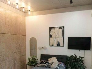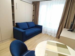 Студия новая, вся мебель и техника новая. В квартире есть все для комфортного проживания. Мебель: большой диван, 2 шкафа, ТВ, тумба, кухонная мебель, пуф, зеркало, торшер, прихожая.