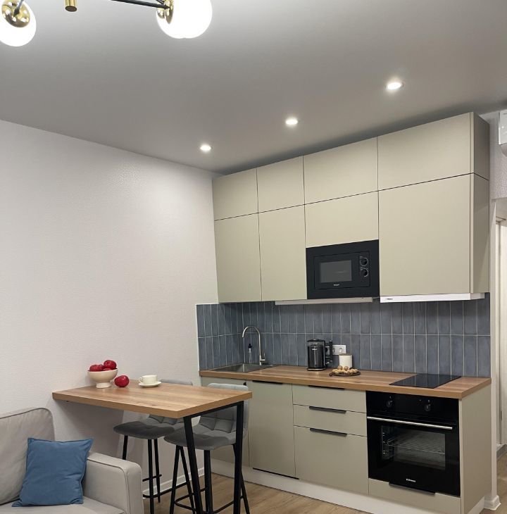 Внутри вас ждёт дизайнерский ремонт, создающий ощущение уюта и современного стиля. В комнате и на кухне есть вся необходимая мебель. Полностью оборудованная техника: кондиционер, холодильник, посудомоечная и стиральная машины — делают проживание максимально удобным.