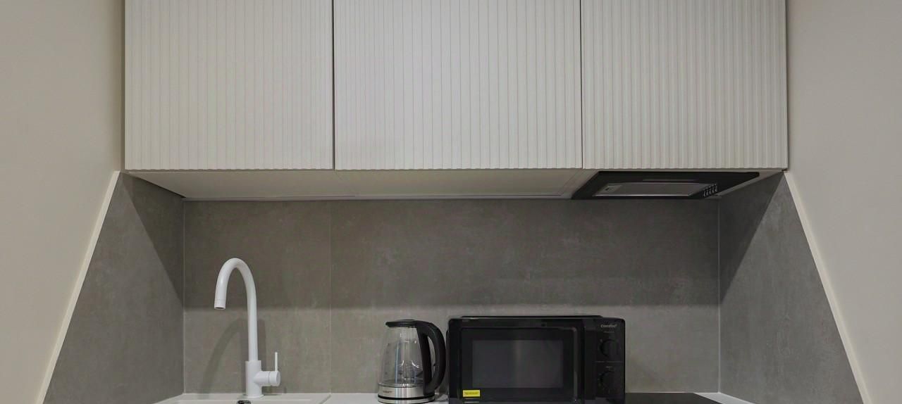 — плита, вытяжка, микроволновая печь, холодильник, чайник;