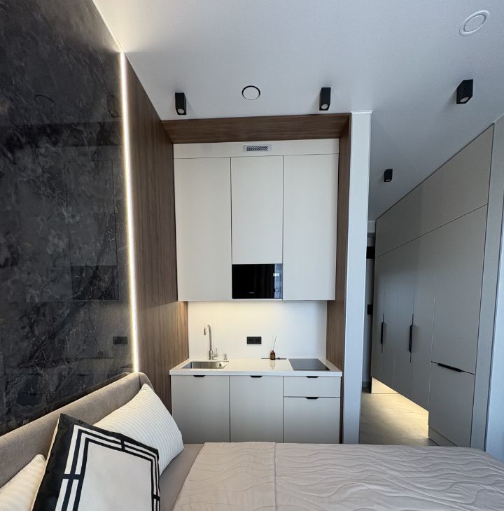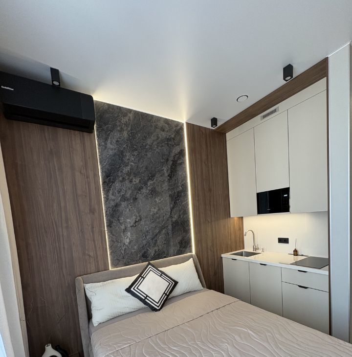 Предлагаю в долгосрочную аренду стильную студию в жилом комплексе бизнес-класса Nice Loft. Это не просто квартира, а готовое пространство для жизни премиального уровня, где каждая деталь продумана так, чтобы вы чувствовали себя как в номере дорогого бутик-отеля, не выходя из дома.