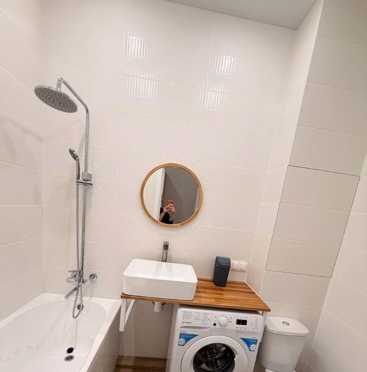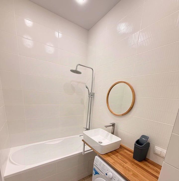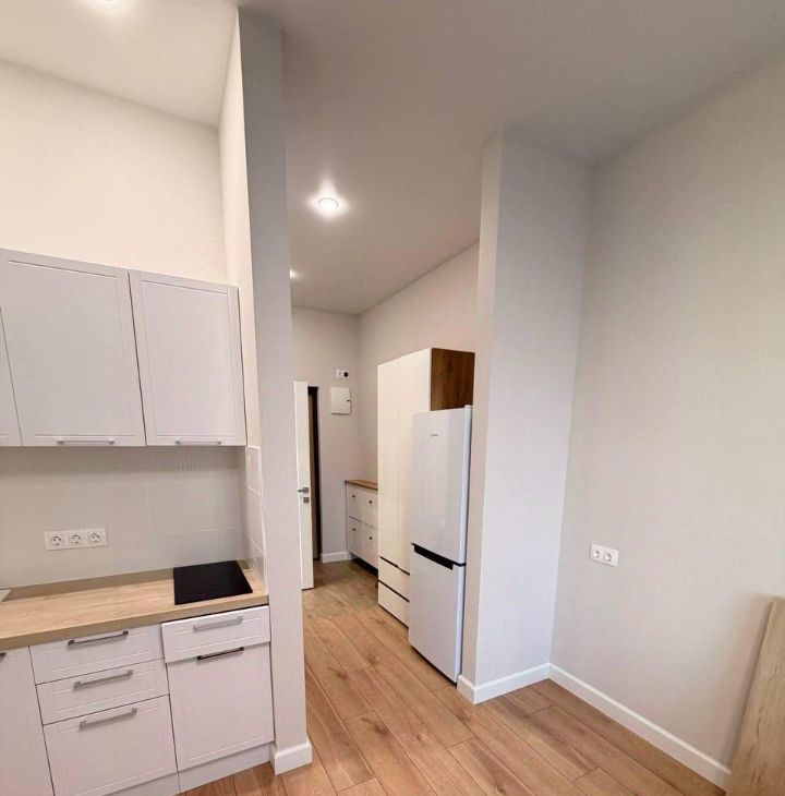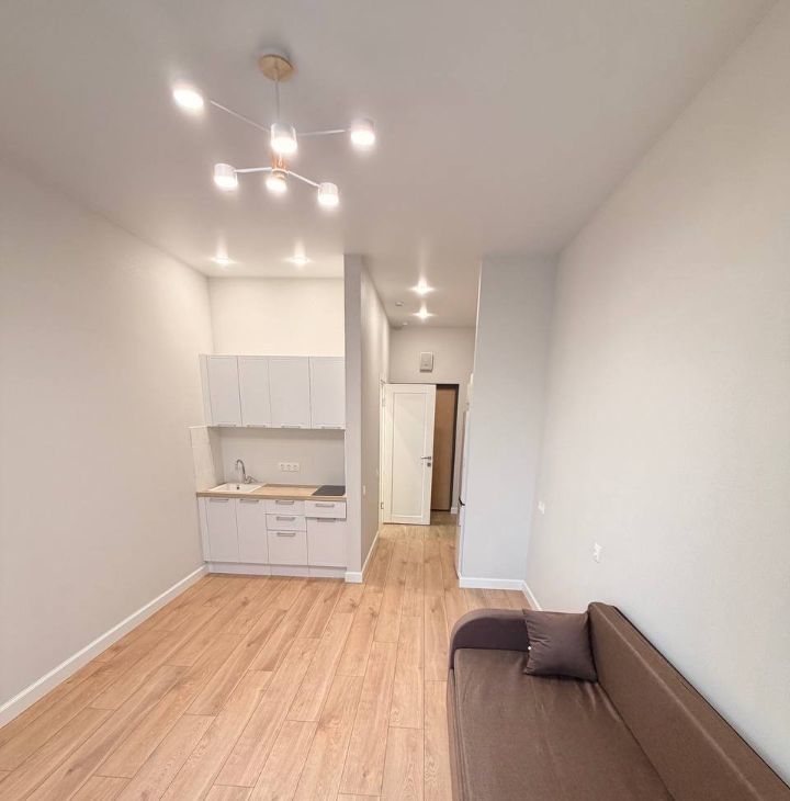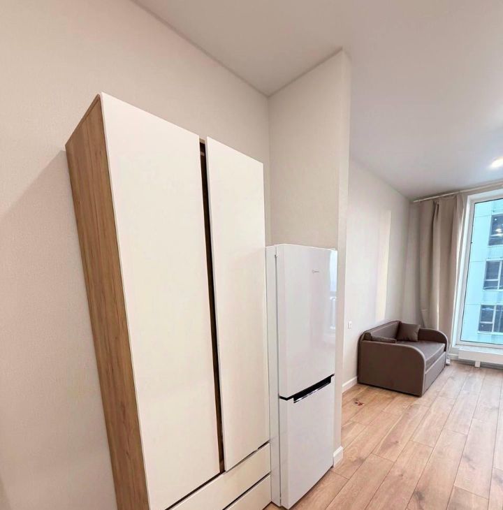 В квартире есть всё необходимое для комфортного проживания. Просторная и светлая студия обставлена мебелью, а также оснащена современной техникой, включая холодильник и стиральную машину. Санузел совмещённый, с полноценной ванной, что добавляет дополнительный комфорт. Окна выходят на улицу, что обеспечивает хорошую освещённость и свежий воздух.
