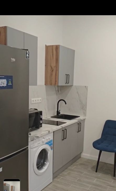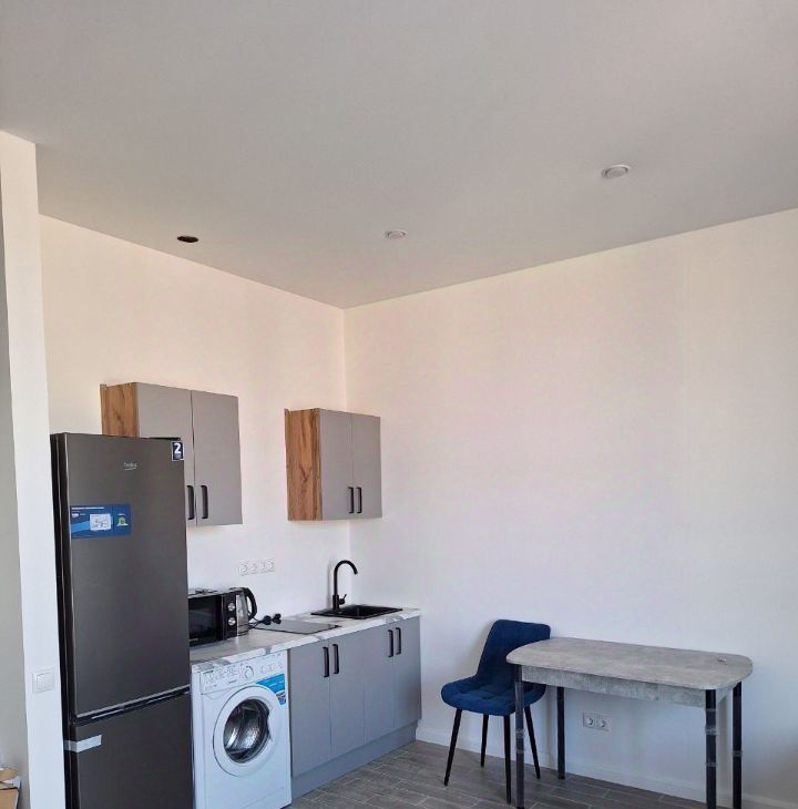 В квартире есть всё необходимое для комфортного проживания: стильная мебель на кухне и в комнате, а также современная техника — холодильник, телевизор, стиральная машина и кондиционер. Ванная комната оборудована ванной, что позволит вам расслабиться после трудового дня. Окна выходят на улицу, поэтому в апартаментах всегда светло и уютно.