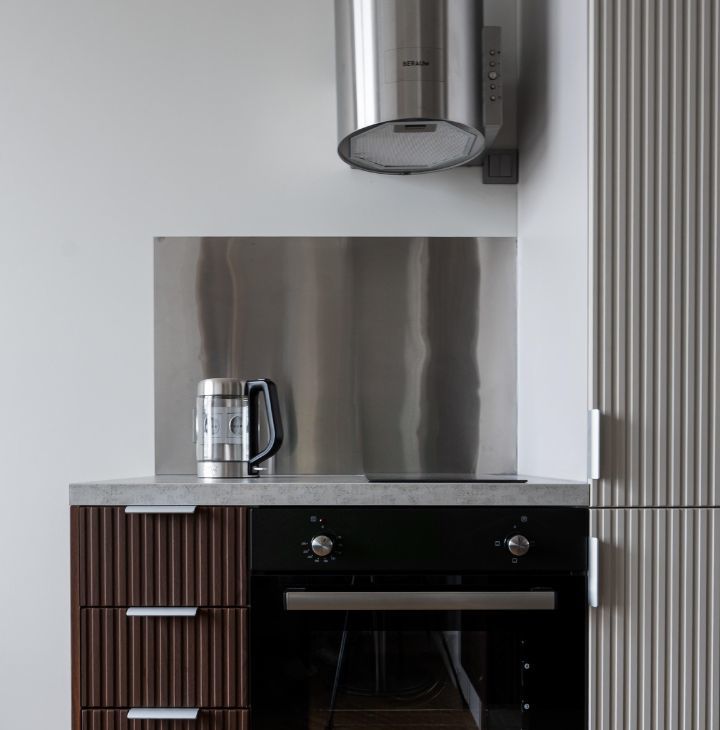 Есть вся техника: посудомоечная машина, кондиционер, духовка, вытяжка, варочная панель, холодильник, микроволновка, стиральная машинка, чайник.
