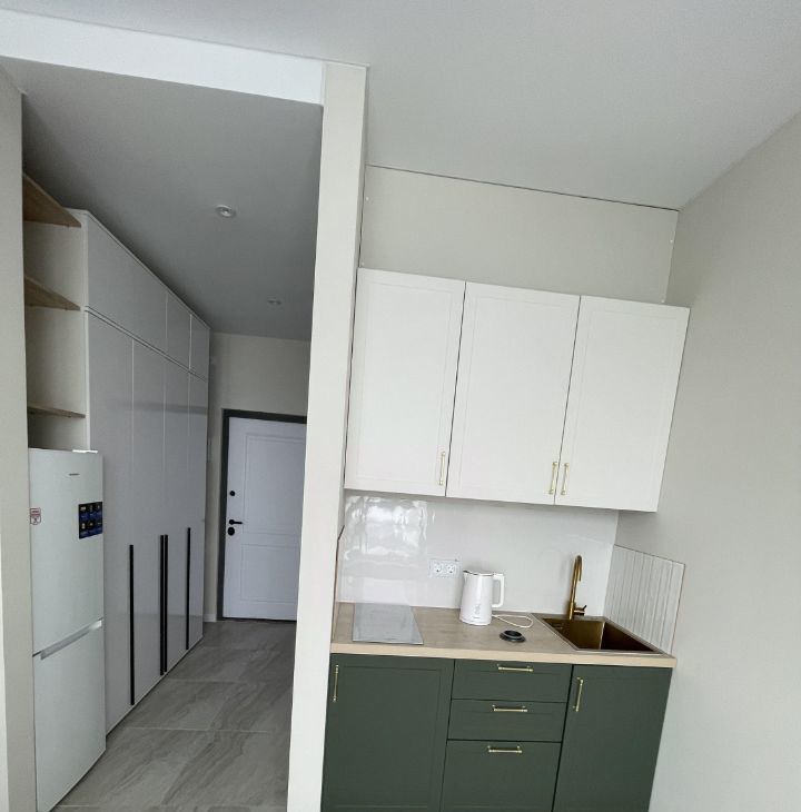 Сдается впервые совершенно новая студия , ранее в ней никто не проживал , отлично подойдет для одного человека. В квартире есть все необходимое для комфортного проживания: полноценный холодильник ; электрическая встроенная плита; стиральная машина; комфортная ванная комната с большим зеркалом. В квартиру останется только купить для себя матрас под свое удобство.