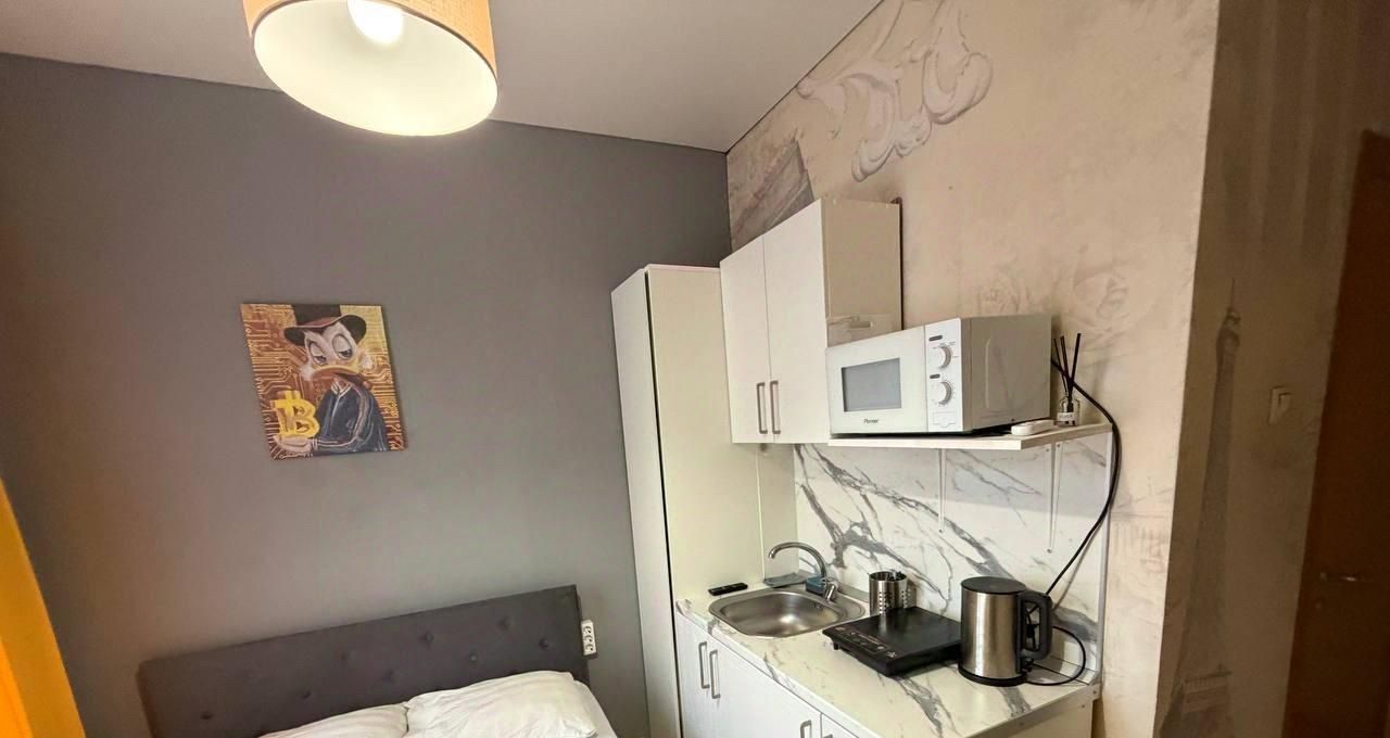 Студия расположена на 2 этаже кирпичного дома. Компактное и функциональное пространство позволяет комфортно жить и работать.