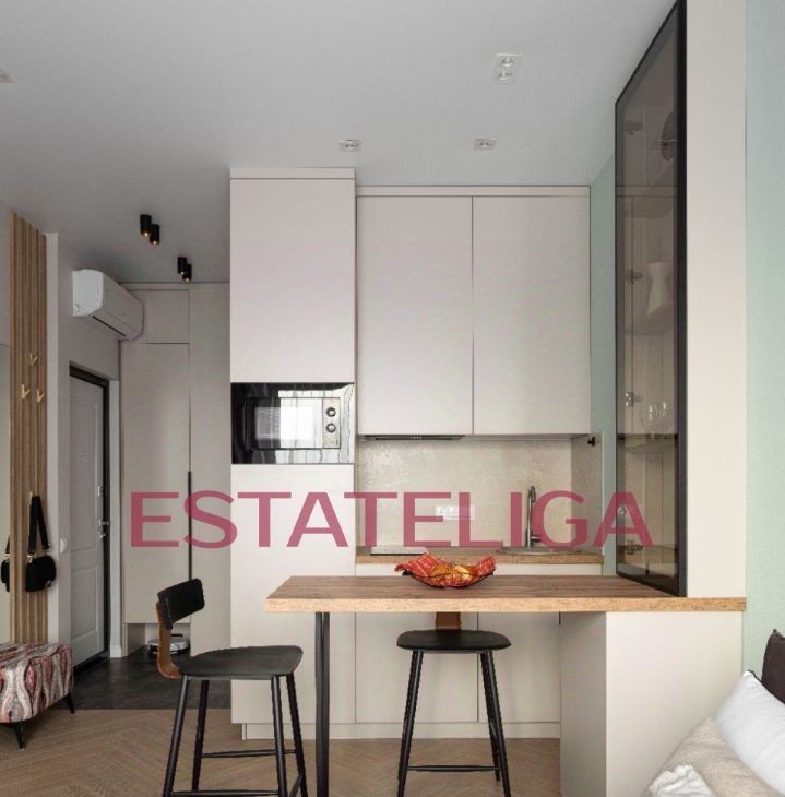 Объект расположен на 16 этаже 20-этажного монолитно-кирпичного дома с просторными трехметровыми потолками. Окна с видом на улицу наполняют помещение (общей площадью 23 м²) светом, а дизайнерский ремонт создает ощущение уюта и стиля. Вся необходимая техника и мебель уже включены: кондиционер, холодильник, полноценная кухонная гарнитура, мягкая зона и кровать. Отдельная современная душевая кабина добавляет удобства. В доме функционируют два пассажирских и один грузовой лифт, а также предусмотрен подземный паркинг.