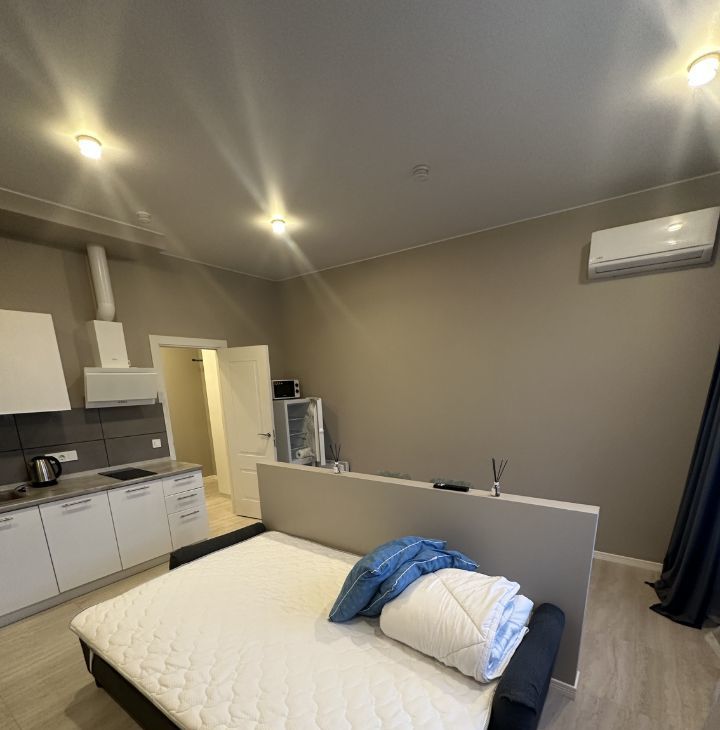 Предлагается в аренду уютная студия в современном жилом комплексе, расположенном по адресу Россия, Москва, Багратионовский проезд, 5Ак1. Квартира находится на 6 этаже нового монолитного дома 2021 года постройки. Общая площадь составляет 32 кв. м, из которых 16 кв. м жилая площадь. Высота потолков 3,5 метра, а окна выходят во двор, что обеспечивает тишину и комфорт.