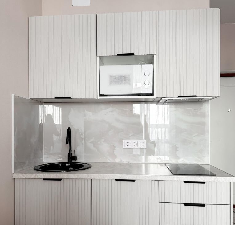 Кухонный уголок с необходимой техникой (свч, электроплита, холодильник)