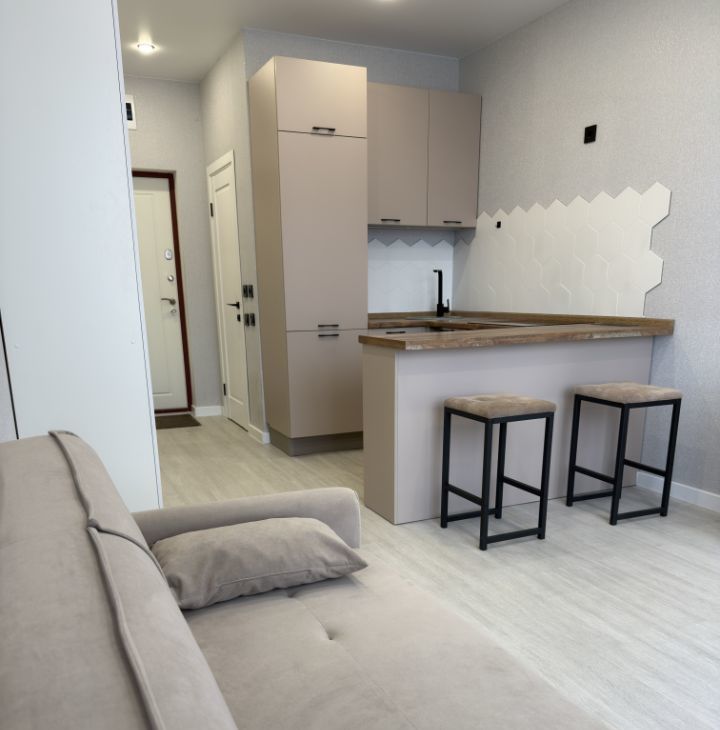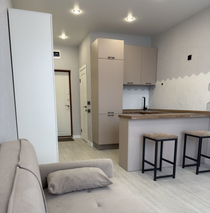 Сдаётся в аренду стильная студия площадью 28 кв. м, расположенная на 2 этаже нового 21-этажного дома 2023 года постройки.