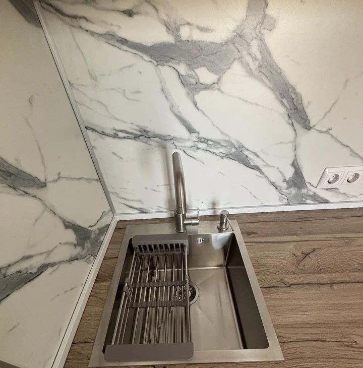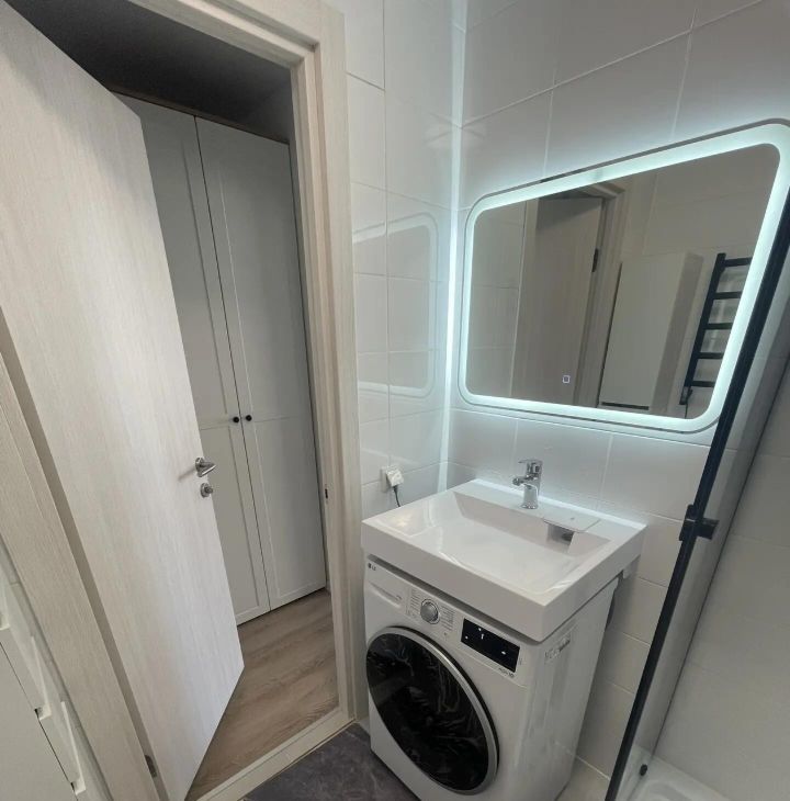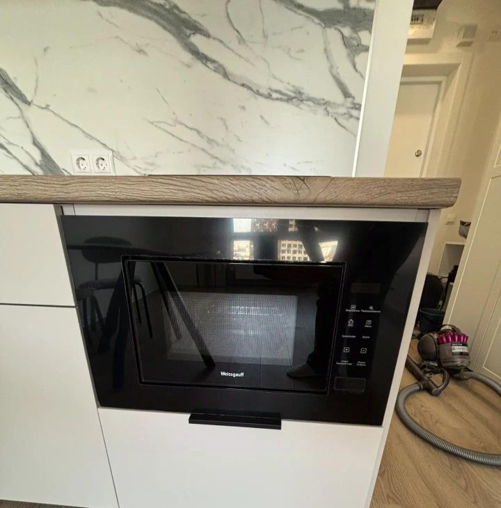 Техника: Новая встроенная техника - варочная панель, вытяжка, микроволновая печь, стиральная машина с функцией сушки.