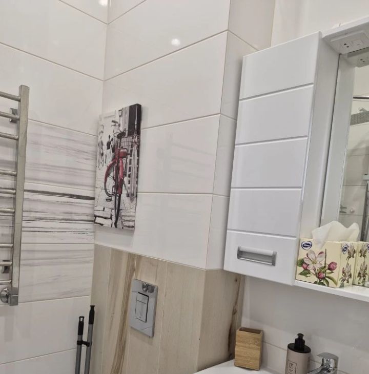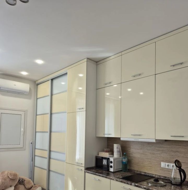 В квартире сделан дизайнерский ремонт, который подчеркивает современный стиль и уют. Пространство студии грамотно зонировано, чтобы обеспечить максимальный комфорт. В наличии вся необходимая техника: кондиционер, холодильник, посудомоечная машина, телевизор и стиральная машина. Санузел совмещенный, оснащен душевой кабиной. Окна выходят во двор, поэтому в квартире всегда тихо и спокойно.