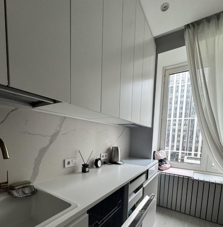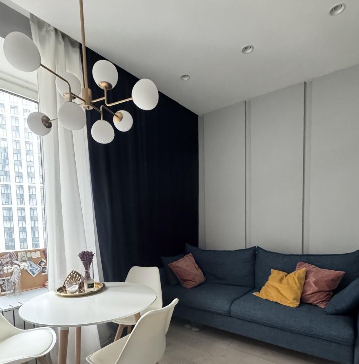 Сдается студия на средний или длительный срок в ЖК Филиград. Дизайнерский ремонт. Студия прекрасно зонирована - есть отдельная спальня, гостиная с кухней, уютный уголок для отдыха у окна. Все продумано до мелочей по правилам эргономики.