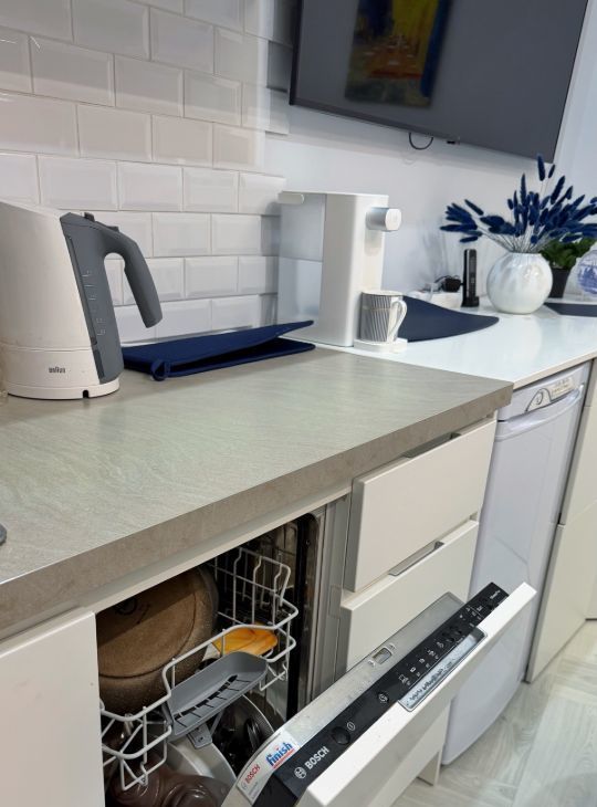 Ремонт выполнен для себя с использованием качественных материалов. Встроенная техника: холодильник, посудомоечная машина.