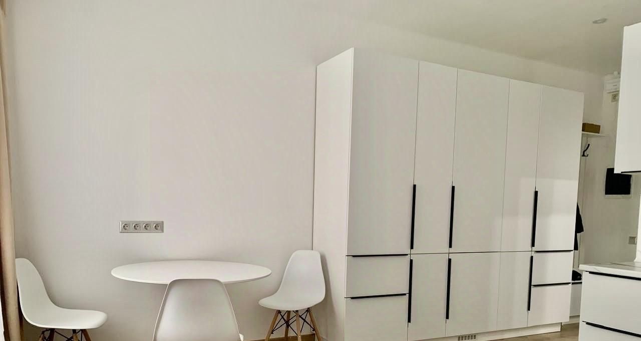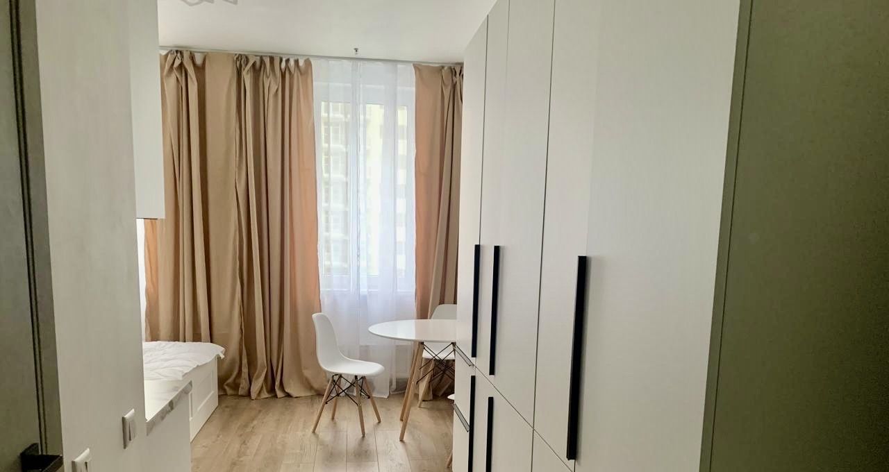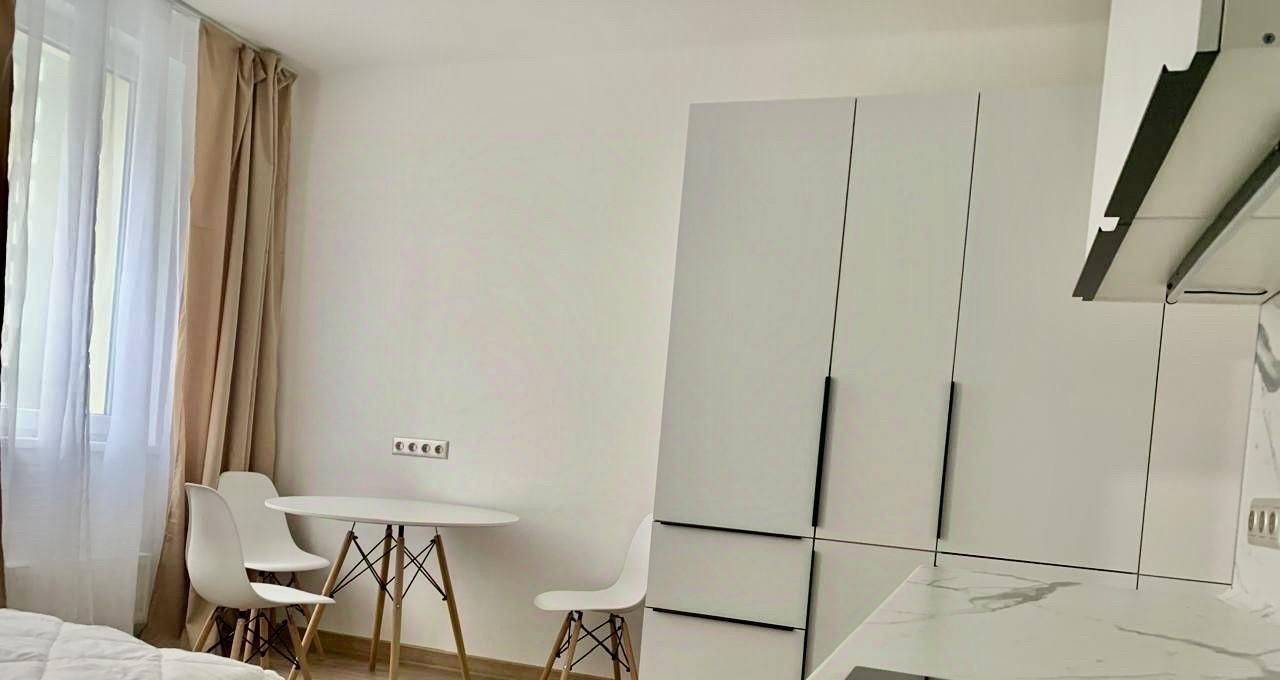Сдается стильная студия с дизайнерским ремонтом в монолитном доме . Просторная жилая зона включает современную кухню с встроенной техникой. В комнате установлен вместительный шкаф и удобная кровать.