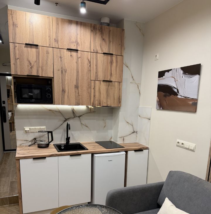 Квартира с дизайнерским ремонтом, полностью меблирована. На кухне и в комнате есть вся необходимая мебель, а также современная техника: кондиционер, холодильник, посудомоечная машина, телевизор , стирально-сушильная машина, чайник, микроволновка. Диван легко трансформируется в полноценное двухместное спальное место шириной 160, с ортопедическим матрасом.