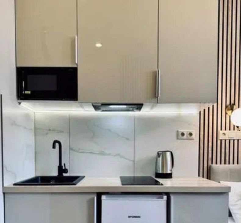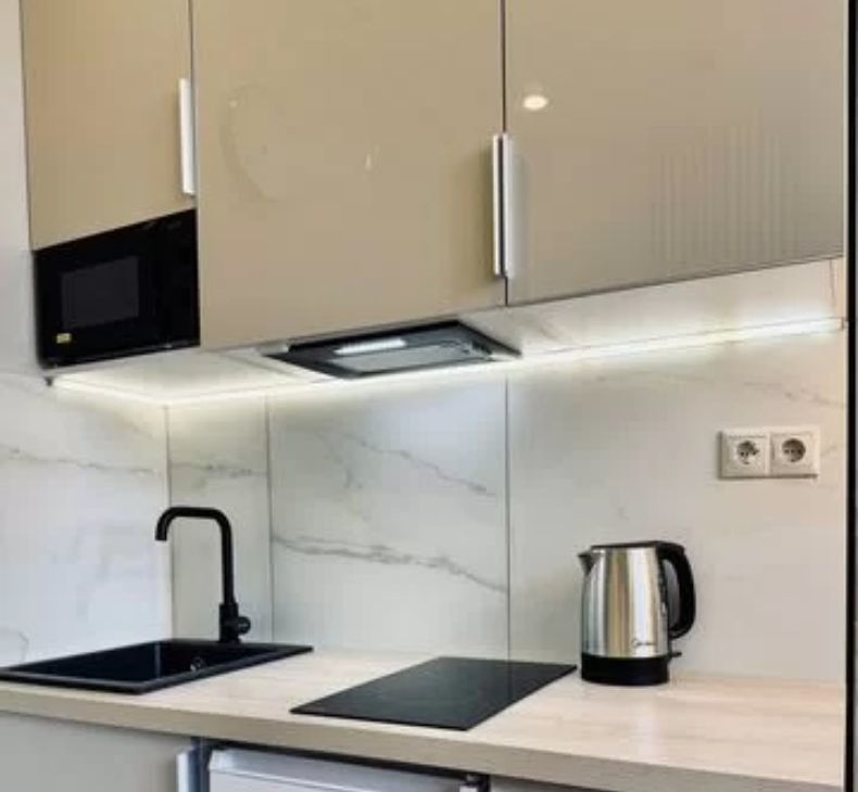 Оборудованная кухня, посуда, все для приготовления еды. Новая мебель и бытовая техника. Кондиционер.