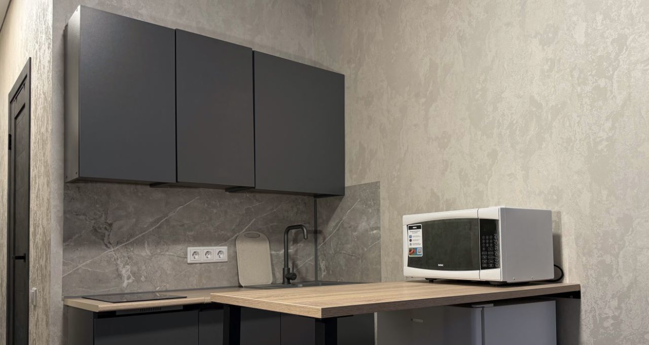 1. Студия с качественным ремонтом сдаётся впервые. Вся мебель, бытовая техника и сантехника — новые.