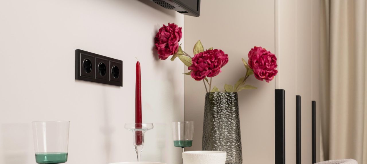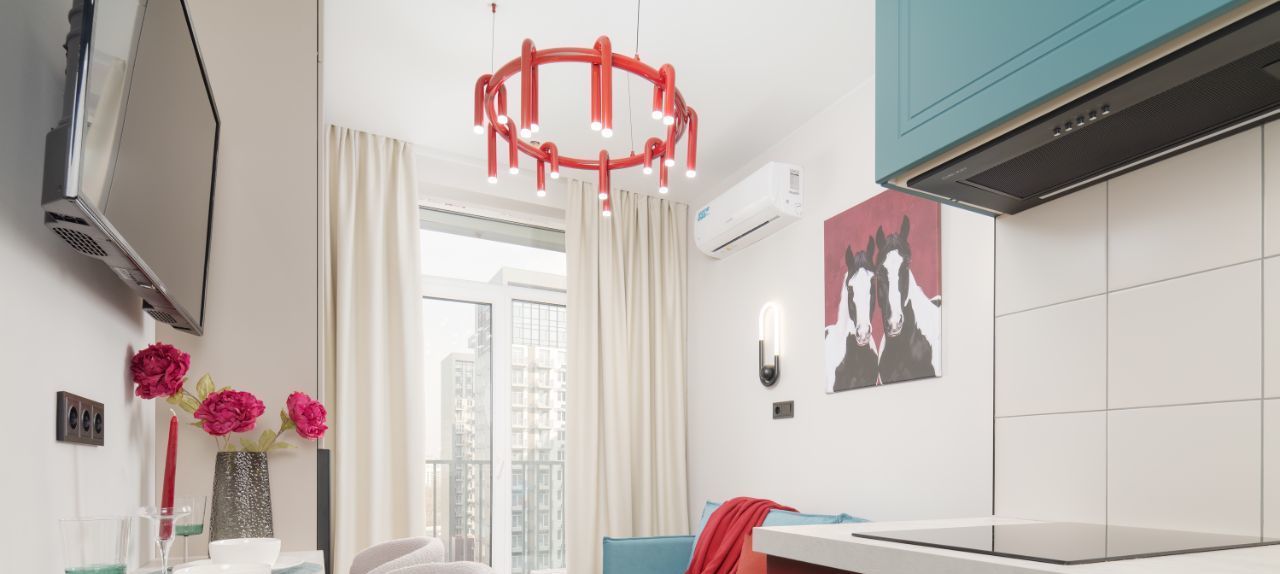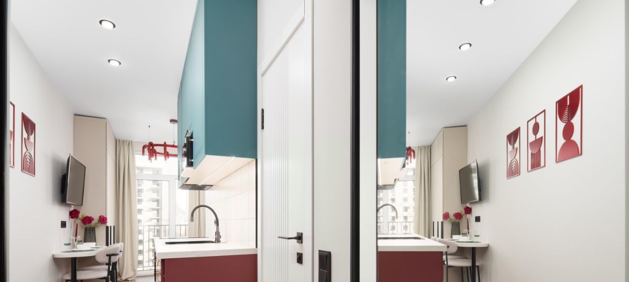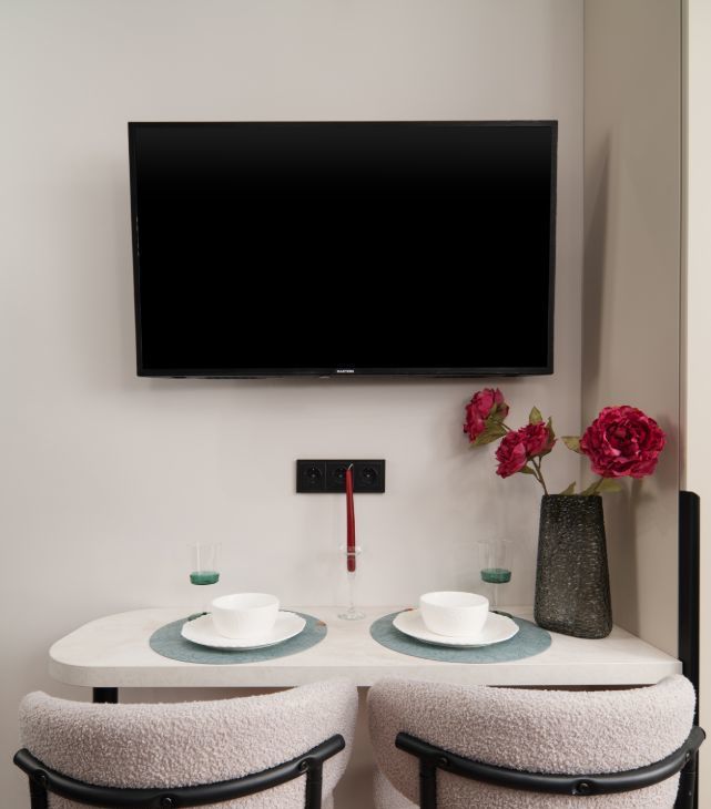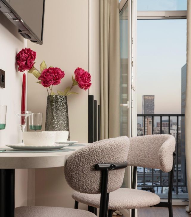 • Обеденная зона на двоих с ярким декором;