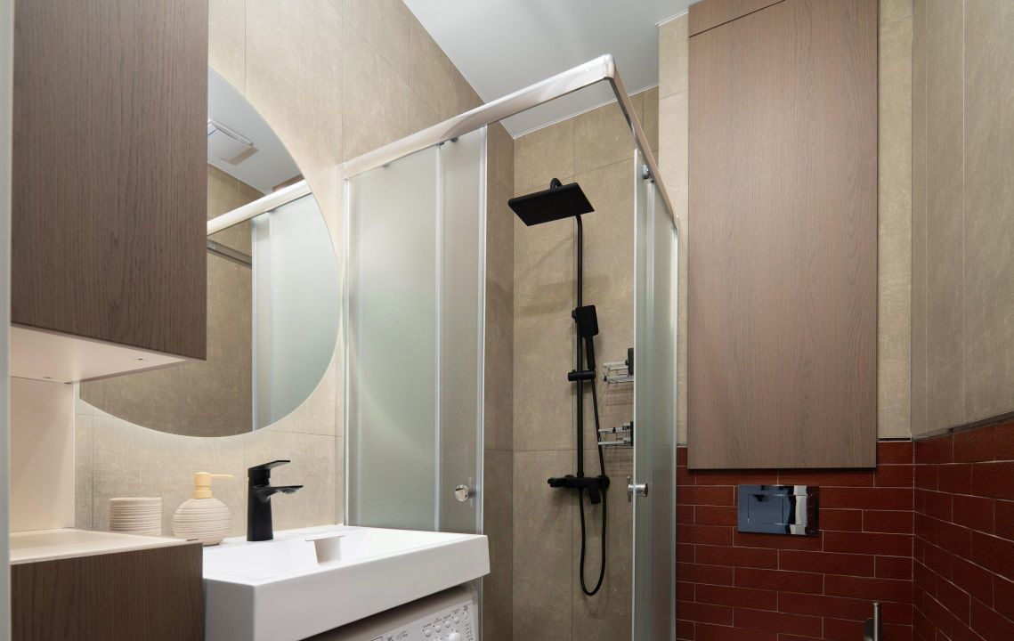 • Просторная ванная комната с душевой кабиной, стиральной машиной;