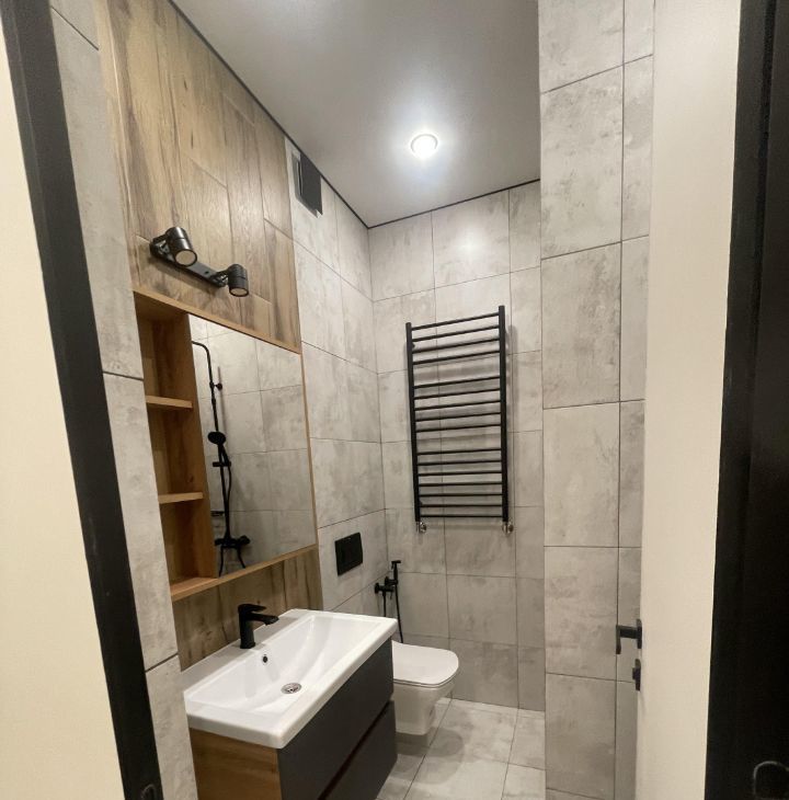 Квартира с дизайнерским ремонтом и полной меблировкой. В комнате и на кухне есть вся необходимая мебель. Кухня оборудована современной техникой: кондиционером, холодильником, посудомоечной и стиральной машинами. В санузле установлена душевая кабина, что делает его еще более комфортным.