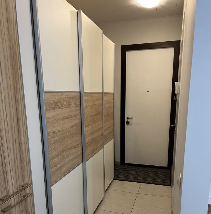 В прихожей большой шкаф-купе из 3 секций.