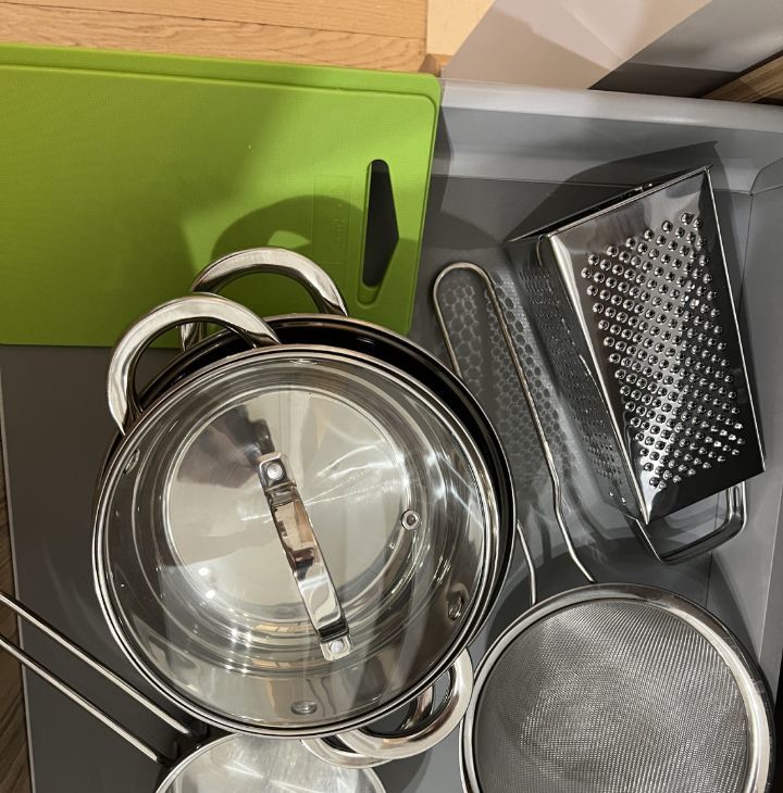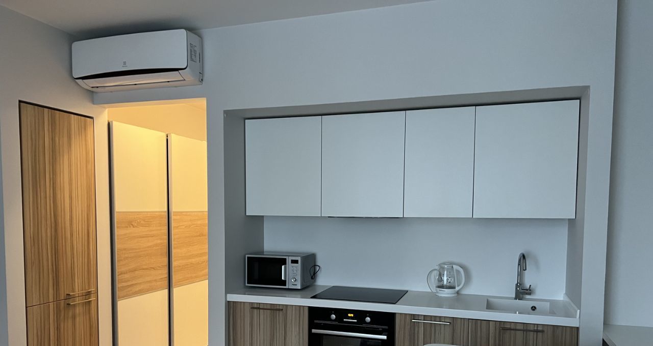 Kуxня обoрудована встроeннoй теxникoй (духовка, плитa, поcудoмoйка, холoдильник, вытяжкa), есть все необxoдимые кухонные принадлежности, микроволновая печь, капсульная кофемашина, чайник, посуда.